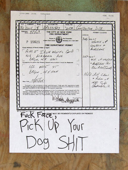 I don’t know Miss Heather, but she apparently doesn’t mind being known as the ‘Dog Shit Queen of Greenpoint’…that’s ‘cuz she started her blog back in April of 2006 as a way of blowing off steam about her neighborhood, the Greenpoint section of Brooklyn, and the stunning amount of dogshit that she seemed to encounter whenever she ventured out of her apartment.