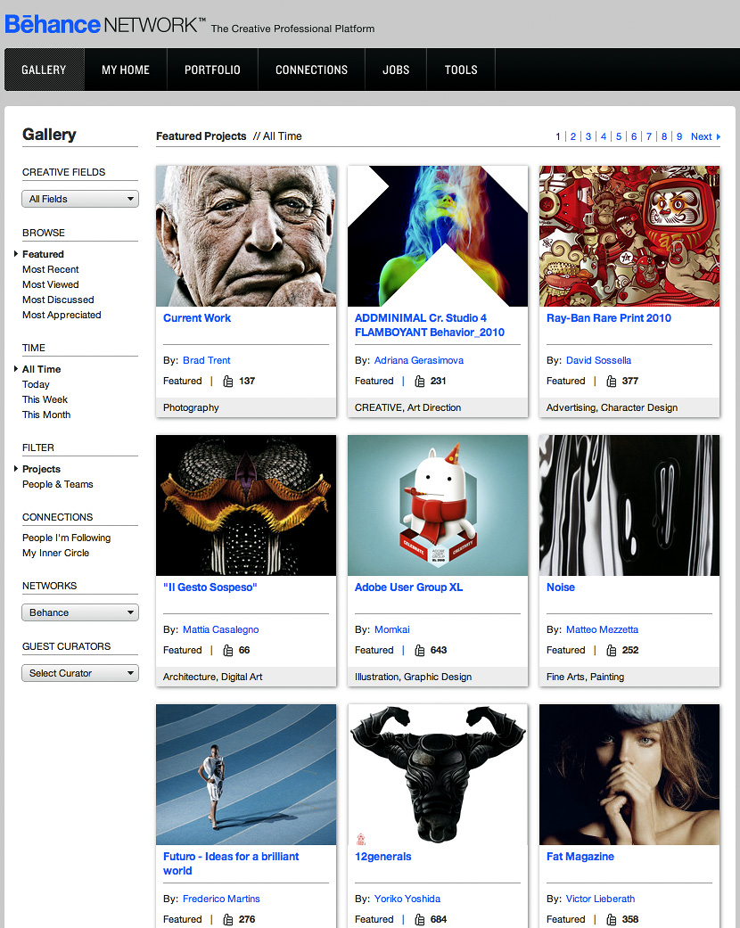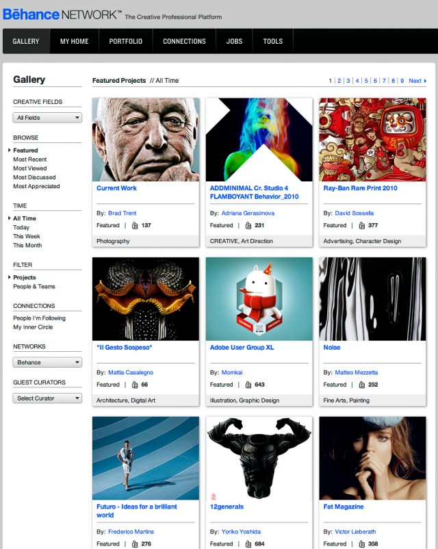 Last week I found about a new “…platform for creative professionals that covers all industries…” called the Behance Network and I figured I would take it for a spin. In the time it takes to brew a cup of coffee, I signed up for a portfolio, uploaded a selection of my work and sat back to see what might happen. Well…this morning I wake up to a boatload of emails from all over the World from people who had suddenly viewed my behance page…because the editors at behance had chosen to feature my work on the homepage of ‘Featured Projects’…! Now this has me thinking that just maybe I should have spent more than five minutes tossing those images up there!
