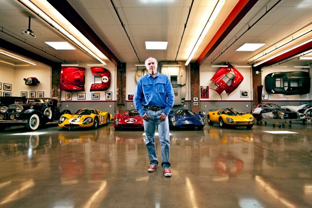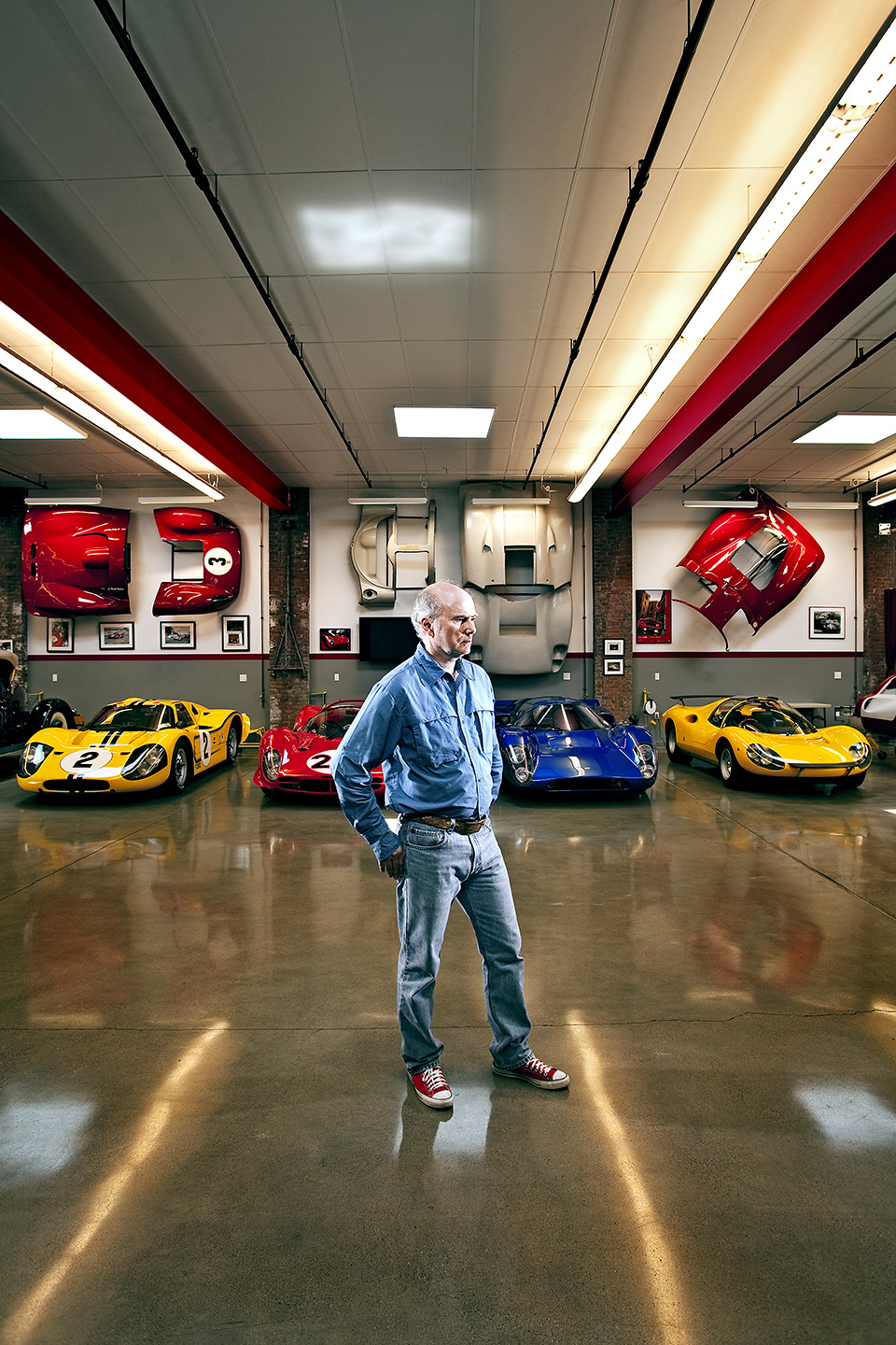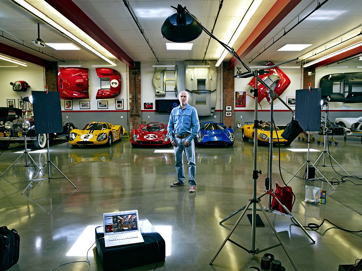 I’ve always been a gearhead…I just love cool cars…I’m glued every week to Top Gear wishing it was me powering along those windy roads behind the wheel of the Supercar of the Week, so it’s just bloody sad that my main method of conveyance is a 2003 Dodge Caravan! Of course, I’ve got nobody to blame but myself…and I suppose it does make much more sense to load my 600 pounds of lighting gear into that functional but ugly-ass Mom-mobile than it would trying to cram it into the backseat of a ’69 Camaro, but it’s still a drag. So when I got to hang out for a day with gazzilionaire investor Jim Glickenhaus in the Top-Secret warehouse that houses part of his World-renowned car collection, I was over the Moon!