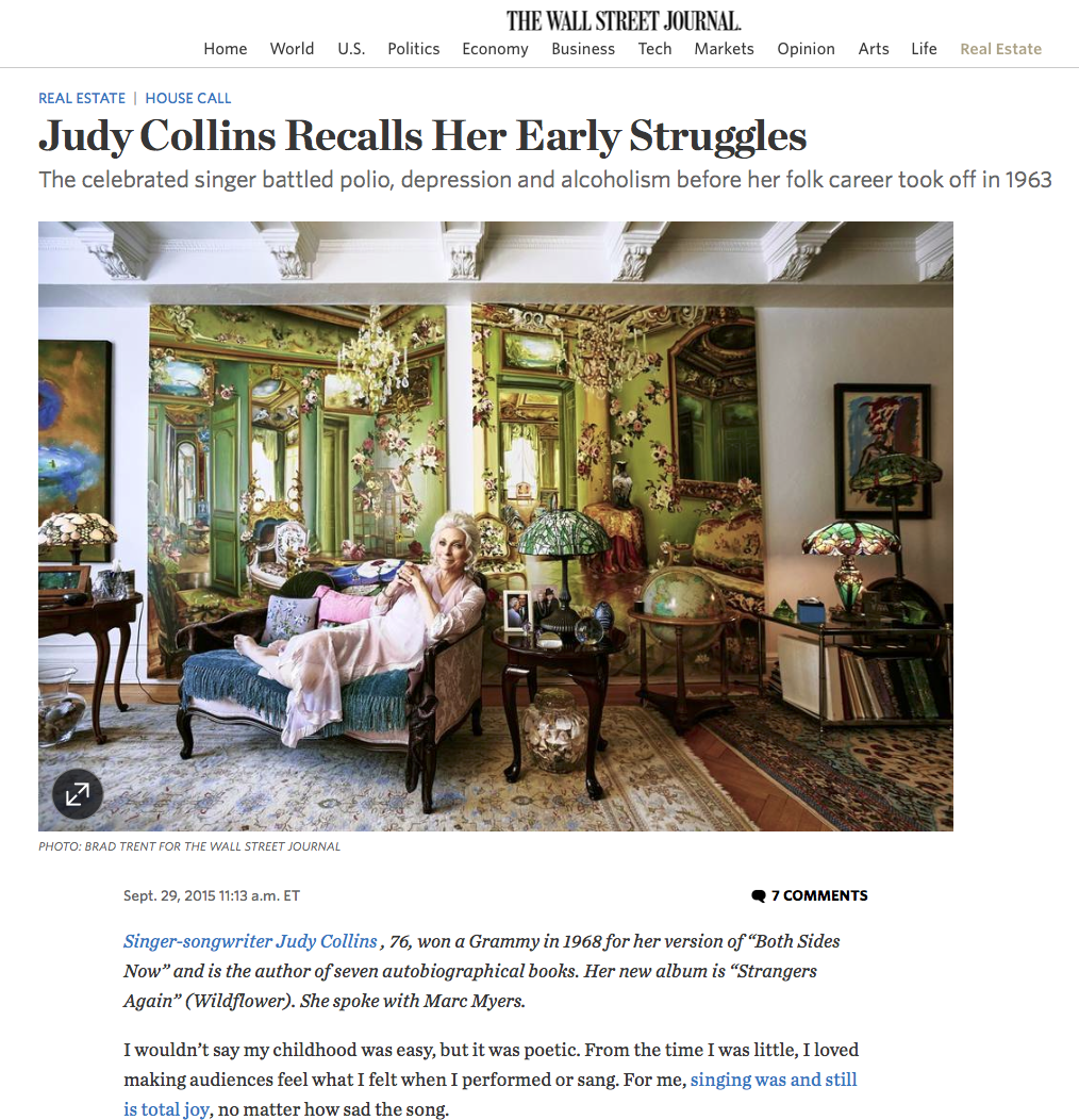 I had so much fun shooting Judy Collins for the Wall Street Journal earlier this year that they decided to send me uptown to shoot her at home for the ‘House Call’ column in the ‘Mansion’ section. Here’s how the day went…