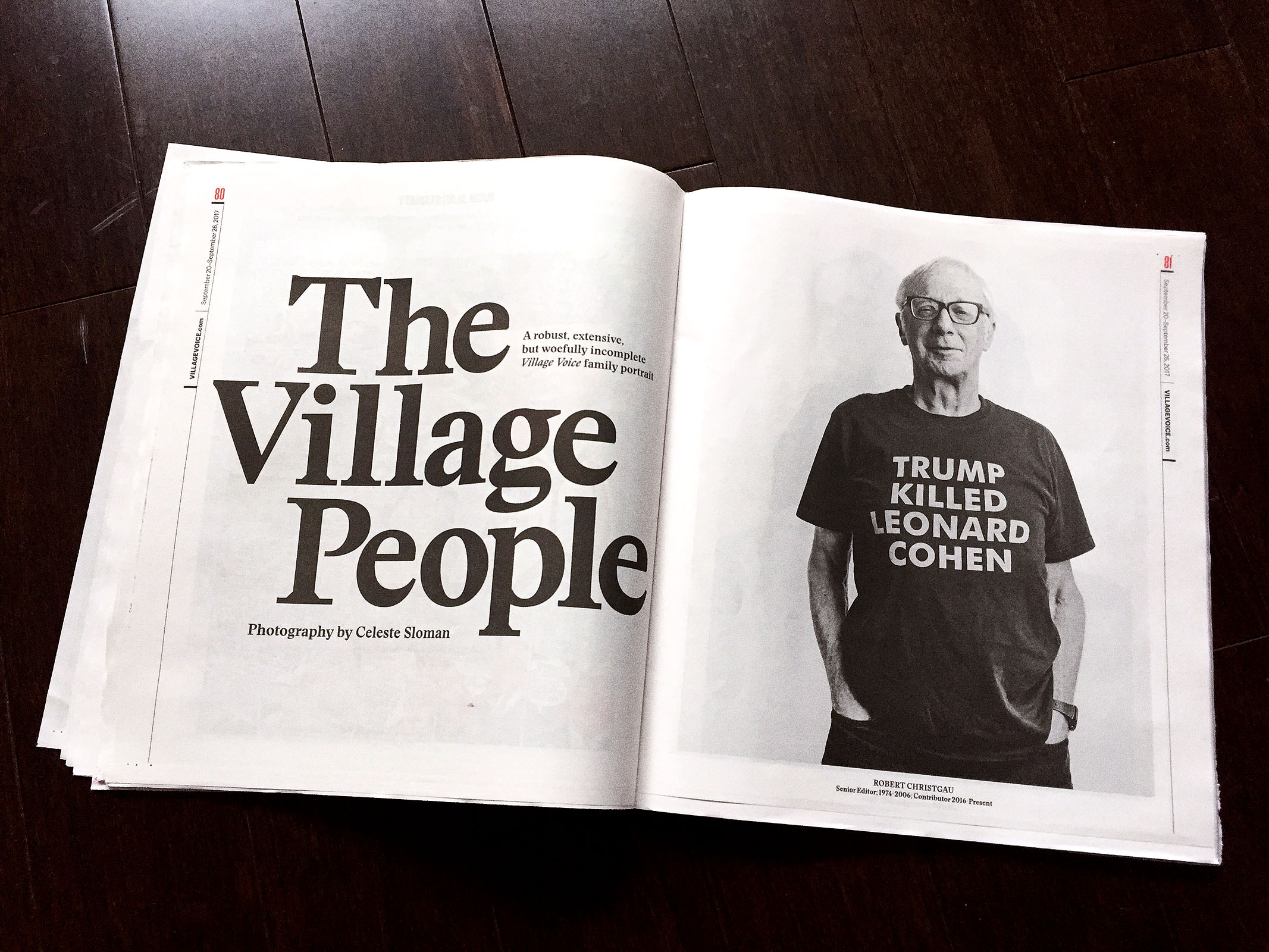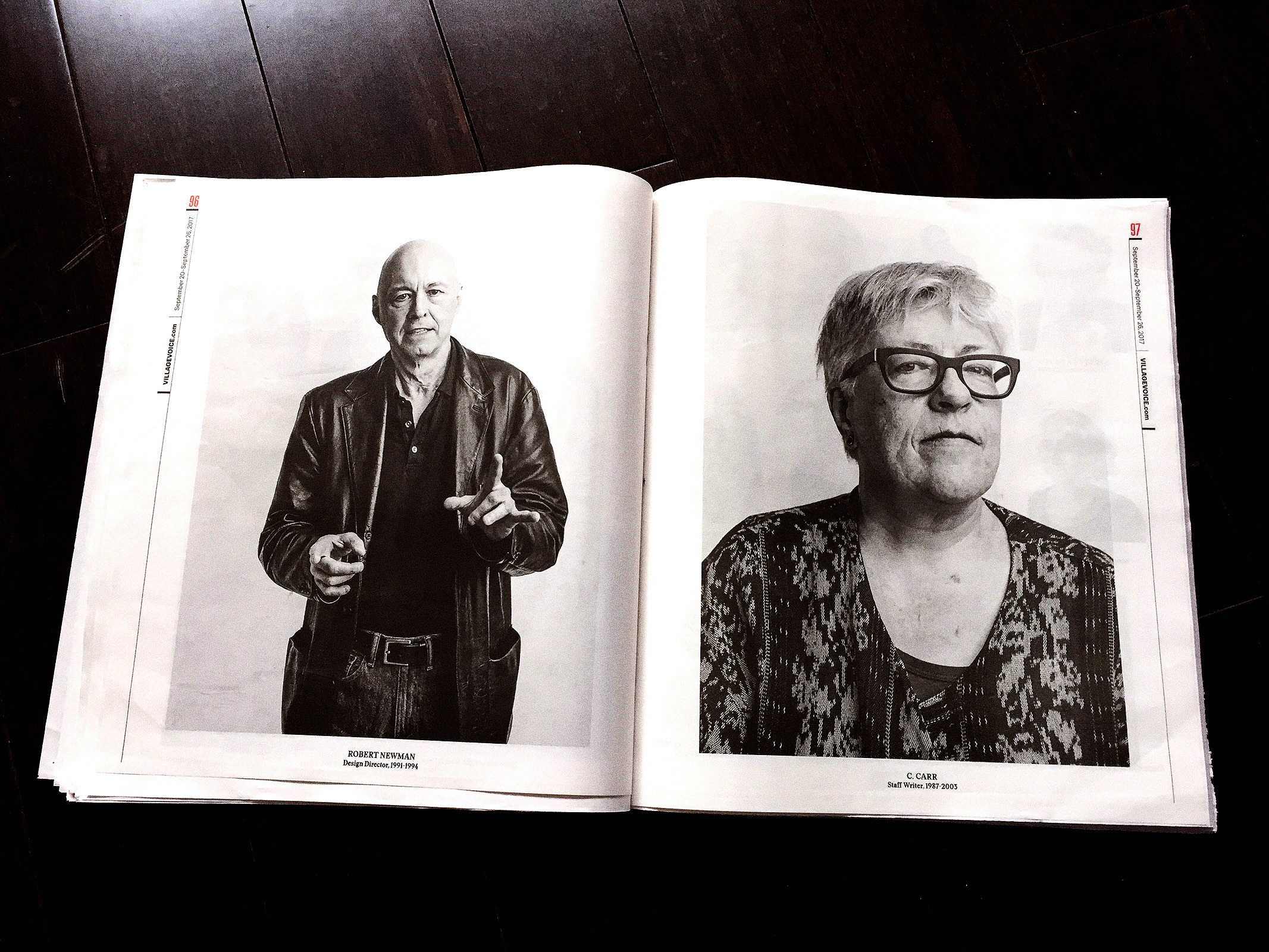 Besides looking back at six decades of Voice history, the issue features a photo essay by Celeste Sloman of some the people who have worked for the paper over the years. She shot everyone at a final party that was held a week ago at the Downtown Community Television Center in TriBeCa. Portraits of Robert Christgau, Sylvia Plachy, Michael Musto, Lucian Truscott IV, Peter Noel, Robert Newman, Amy Taubin, Jerry Saltz, Joe Conason, Joe Levy, Guy Trebay, James Hamiltom, Susan Brownmiller, original publisher Ed Fancher and many, many, many more graced 50 pages of the issue. It payed respect to these people in a way never before seen at the end of a publications lifespan. It was gorgeous.
