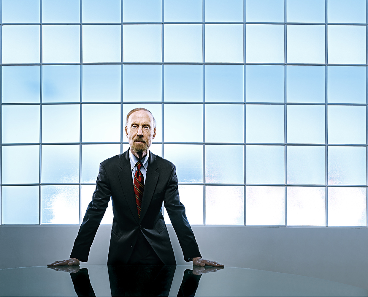 With over $3.7 trillion (not a typo…with a “T”) of assets under management, BlackRock is the world’s largest asset manager, and CEO Larry Fink runs the whole ball of wax. And you would be right in assuming that posing for pictures is pretty far down his ‘To-Do’ list, so when Adrian asked me to shoot him for the magazine’s new ‘CEO Spotlight’ feature, I knew I would have precious little time and have to be nailed down and ready to go when he got to the set. The CEO Spotlight is formatted with the subject silhouetted onto the page and has to be shot on white seamless, but with few locations at BlackRock large enough for us to set up a mini studio, we decided to drop our paper right in a hallway on the executive floor. Enjoy…