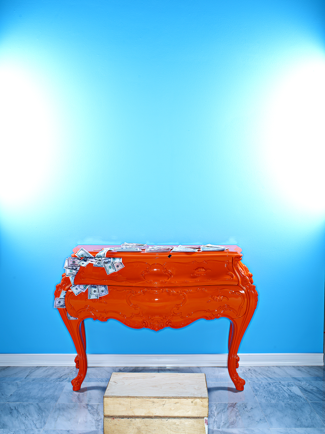 …but I knew that Photoshop was gonna let me pick and choose whatever final colors we needed! Next, I had to stuff the drawers with a few hundred thousand dollars of prop money…..
