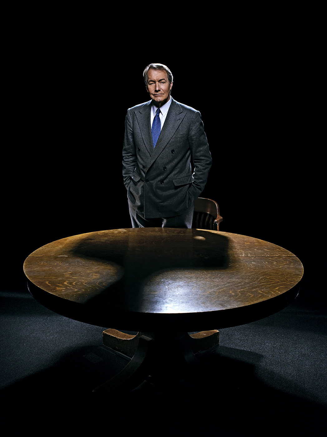 As the new era at Bloomberg BusinessWeek begins, so does a new stable of columnists, and one of the first new names added to the masthead is the revered television interviewer and journalist, Charlie Rose. We had the pleasure of photographing him in his TV studio…at the table…for his new column portrait.