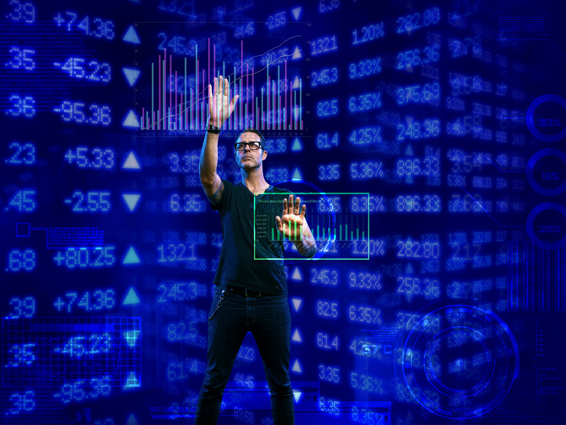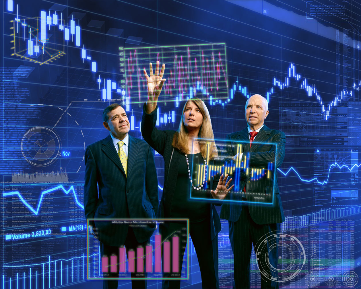 Adrian Delucca and I had been tossing ideas around for months on how to make this work. I had to generate the floating graphs and other graphics that would be ‘moved around’, and we also had to come up with the perfect background images to position the people against…