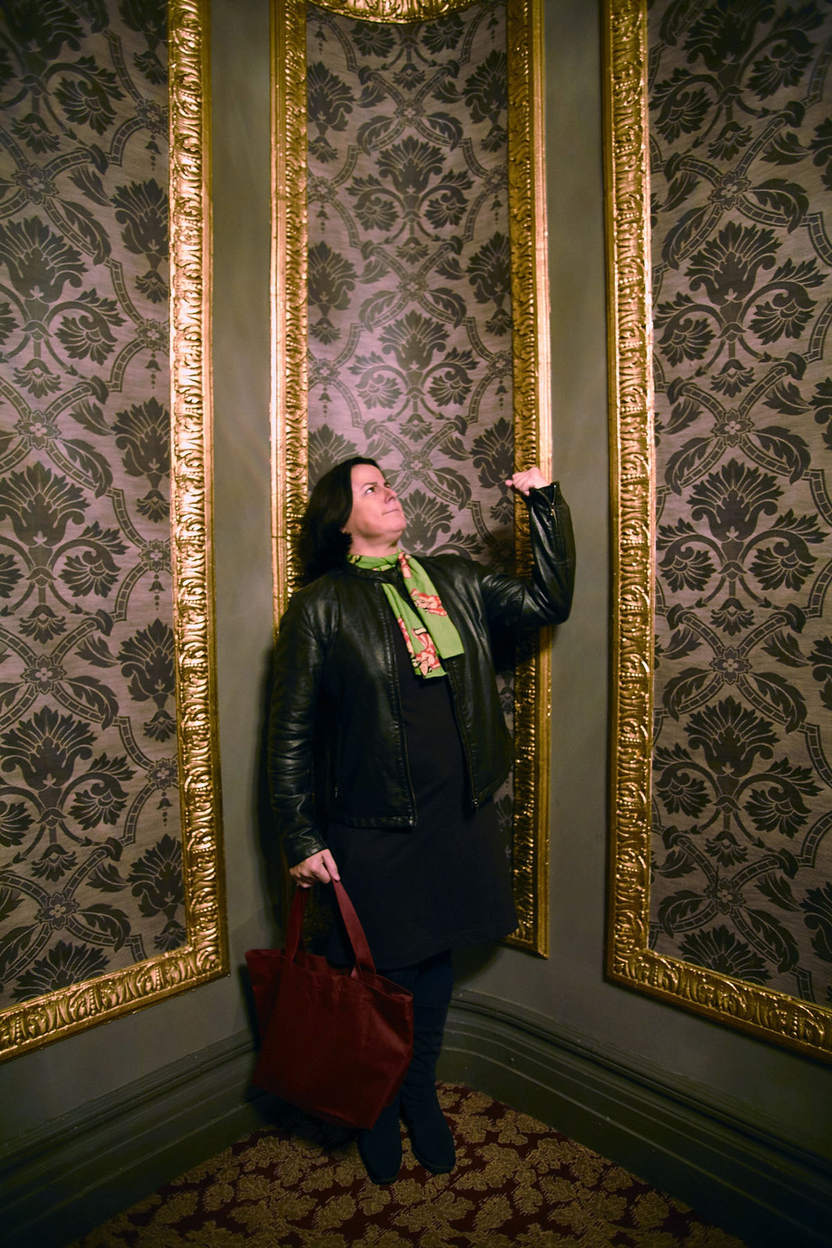 Upon arriving at his townhouse, we immediately noticed the silk-covered settee framed by silk curtains in the front window…
