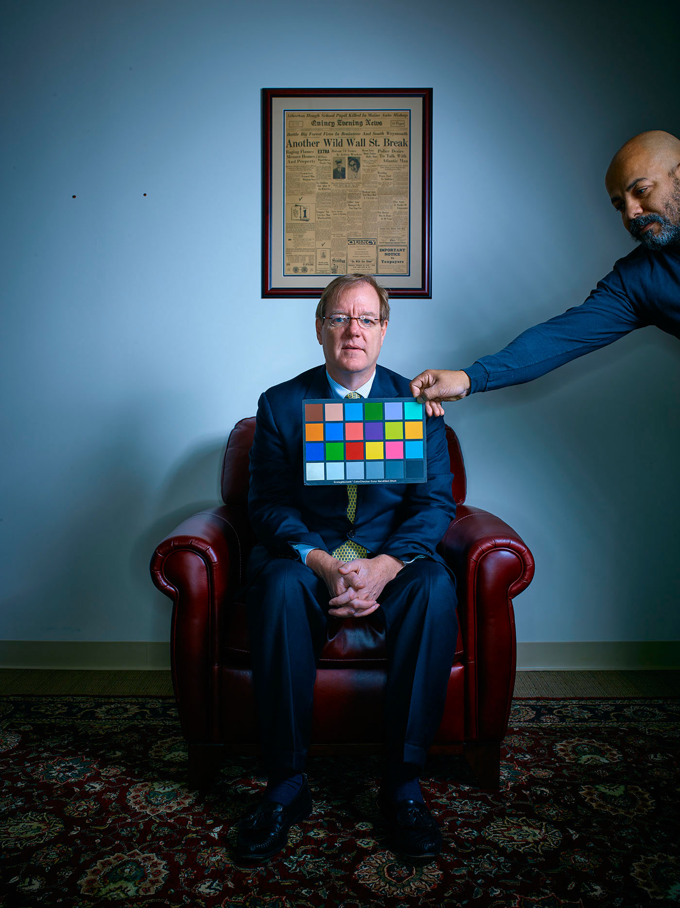 When January rolls around, one constant for the past decade has been the crew from Damn Ugly Photography has gotten to load a couple of thousand pounds of gear into a small room at the Harvard Club to shoot the members of the annual Barron’s Round Table. The basic formula is always the same. We start shooting at 8:00AM as the folks arrive. We have to shoot them separately since we need to be able to move each person around into whatever situations we’ve cooked up…and we have to be completely finished by 10:00AM since that’s when their all-day meeting begins. In that time we have to come up with images that will run on three consecutive covers in January, plus the cover for the mid-year report in June, as well as inside feature photos for all issues. Easy, right?!!
