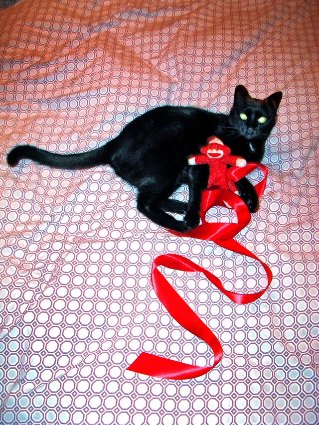 Camille Christmas Nothing makes Camille happier than unwrapping a new Sock Monkey and some fresh ribbon… Share this: Click to share on Facebook (Opens in new window) Facebook Click to share on X (Opens in new window) X Click to share on Reddit (Opens in new window) Reddit Click to print (Opens in new window) Print Click to email a link to a friend (Opens in new window) Email Like Loading...