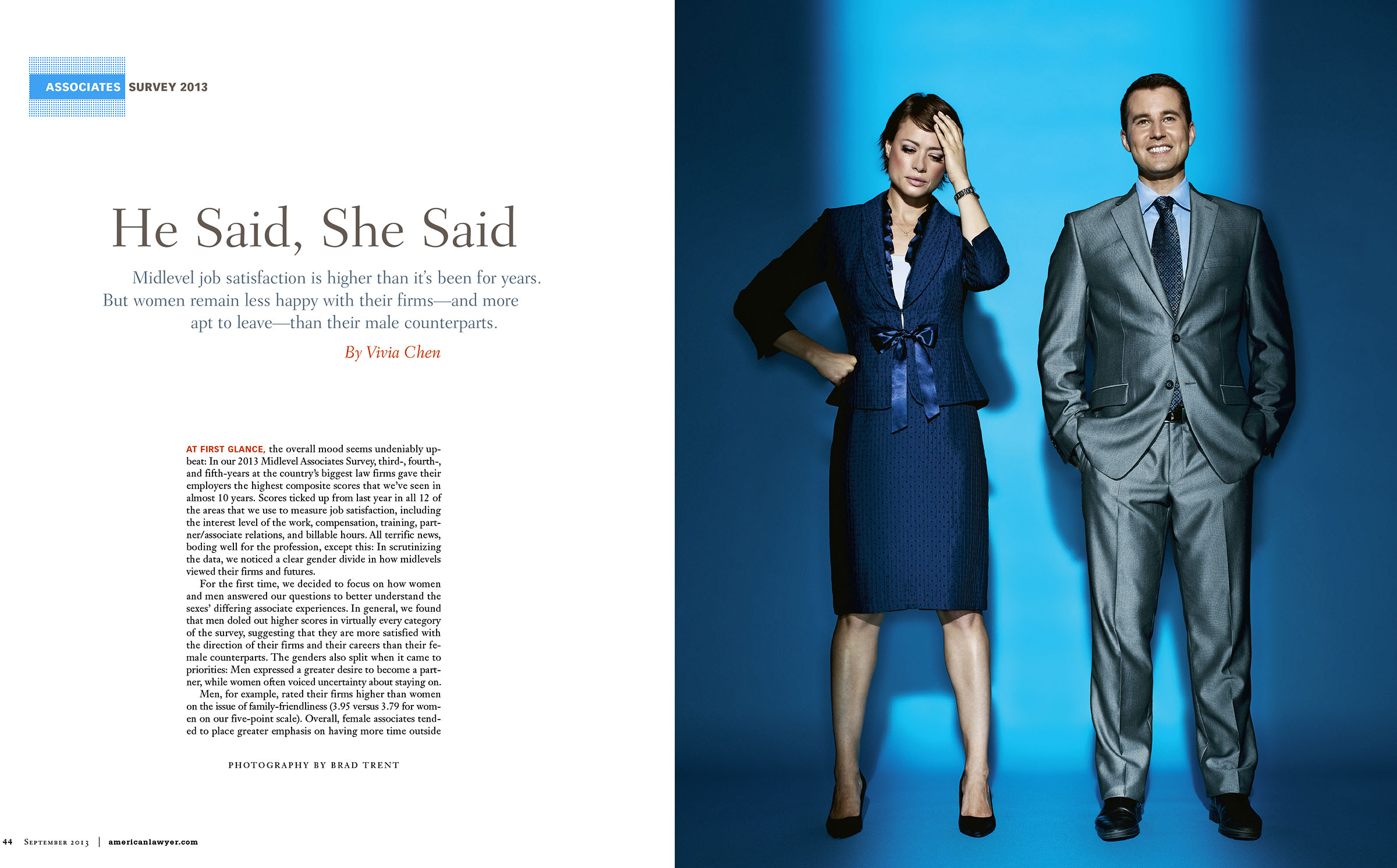 Maggie Soladay, Photo Editor at American Lawyer, recently had us shoot the cover feature for their annual Associates Survey. The cover image had to convey the rather subtle idea that female associates gave their firms lower marks than the male associates did in many areas on the survey. Here’s a little taste of how it went…