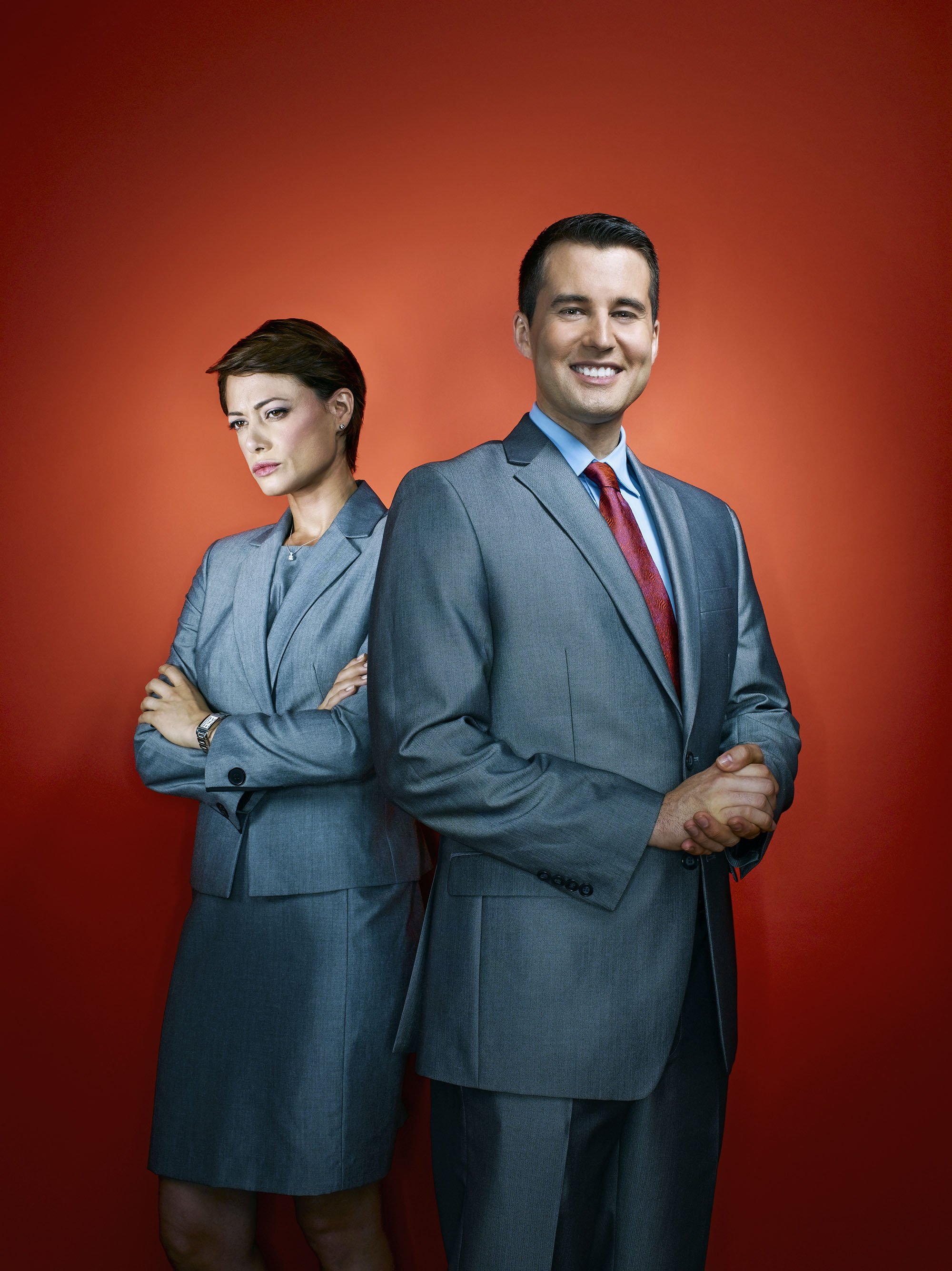 As you can see in the lighting diagram, I kept things fairly simple, but I wanted to light our models (Jo Quiles and Johnny Tyrone) with two separate main lights…20″ Profoto Beauty dishes with 25 degree grids…in such a way to add to the drama. The male associate had to be in a hero light…something that would make him more prominent in the photo, while the female associate was lit slightly from below to give off a more menacing vibe. Not exactly ‘monster lighting’, but just enough to not come off as a wash of soft light. Other than the dish reflectors, I added a ringlight with the soft reflector to give a sheen to their suits.