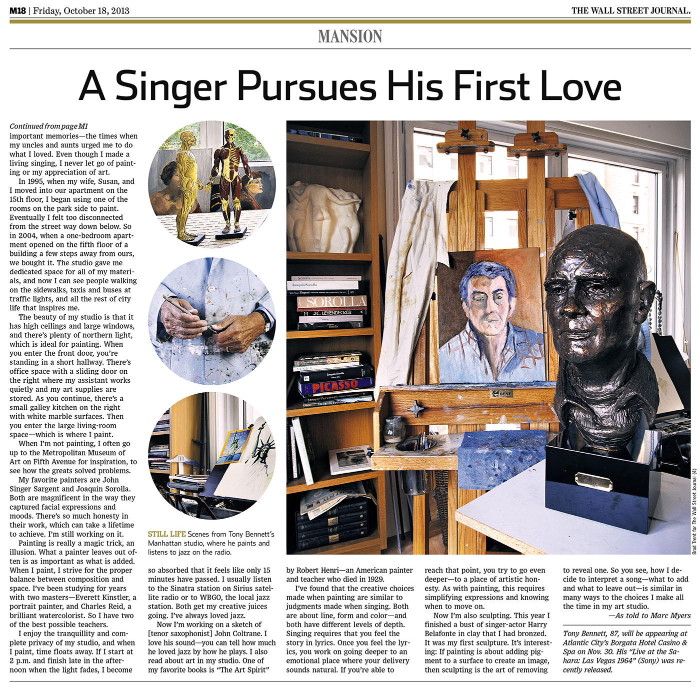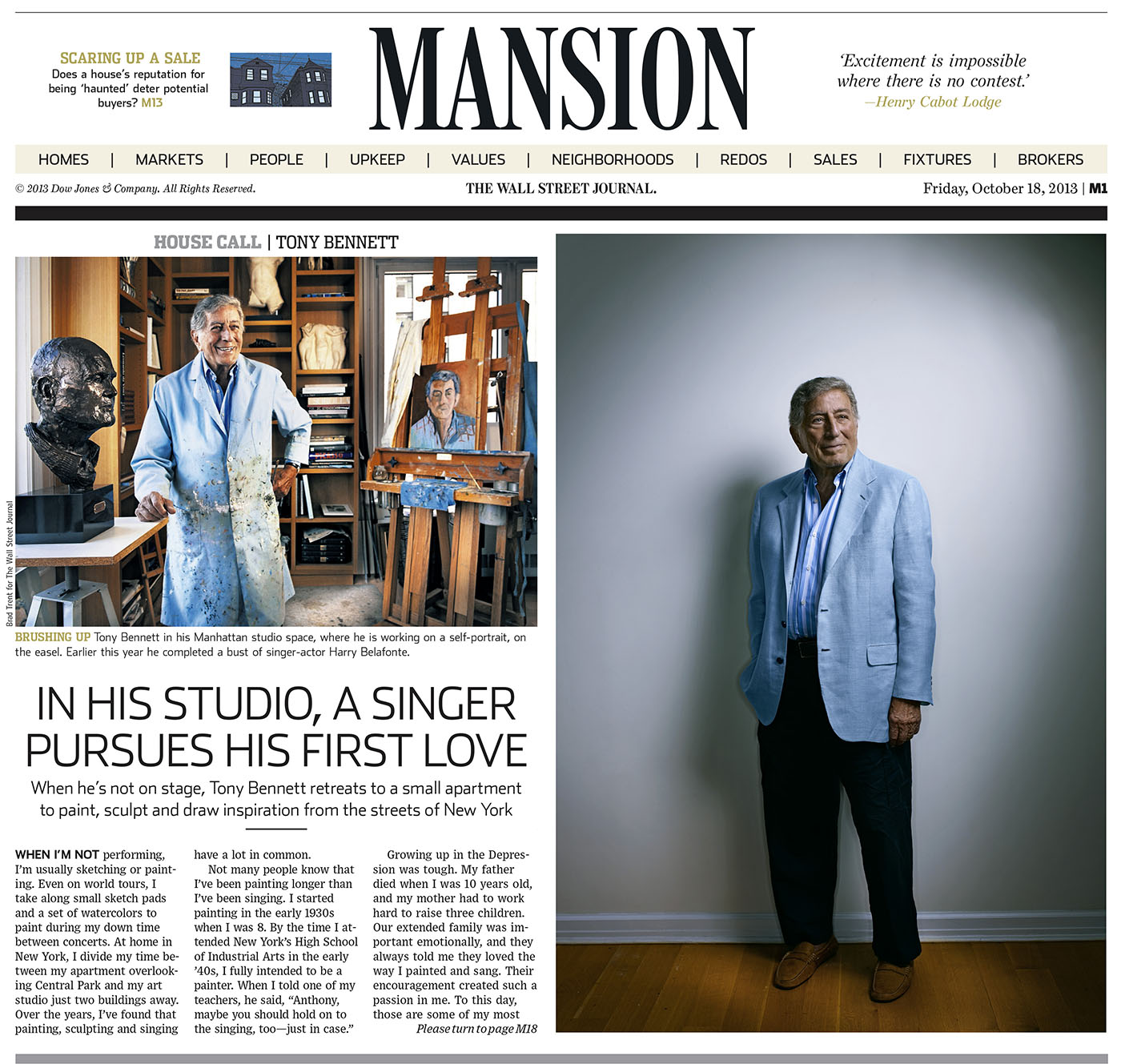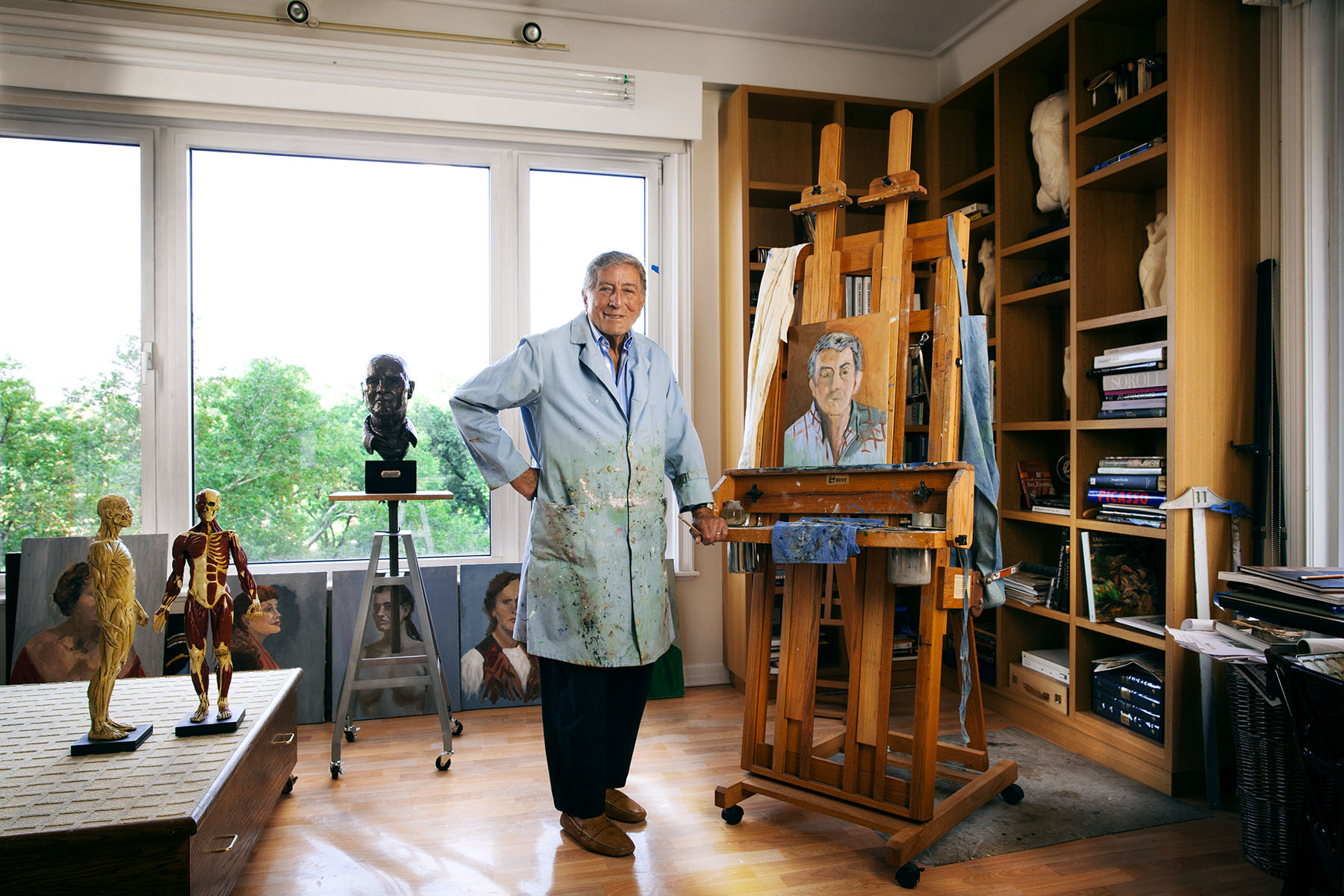 I have a very short, unspoken list of people that I would never presume I would have the opportunity to meet, let alone get to photograph. That list has included Jacques Cousteau, Steven Spielberg, Christopher Reeve, and a few Presidents. But a couple of weeks ago, Kat Malott at the Wall Street Journal gave me the call. Tony Bennett. Tony sketches or paints every day, and Kat…the Photo Editor for the ‘Mansions’ section…wanted me to shoot Tony the Artist, at home with his paintings. The idea was to show him in his studio and keep things as ‘real’ as possible. Given that it was a painting studio, I kinda hoped the available light would make things easy in that respect. I wasn’t disappointed. Here is how things looked…