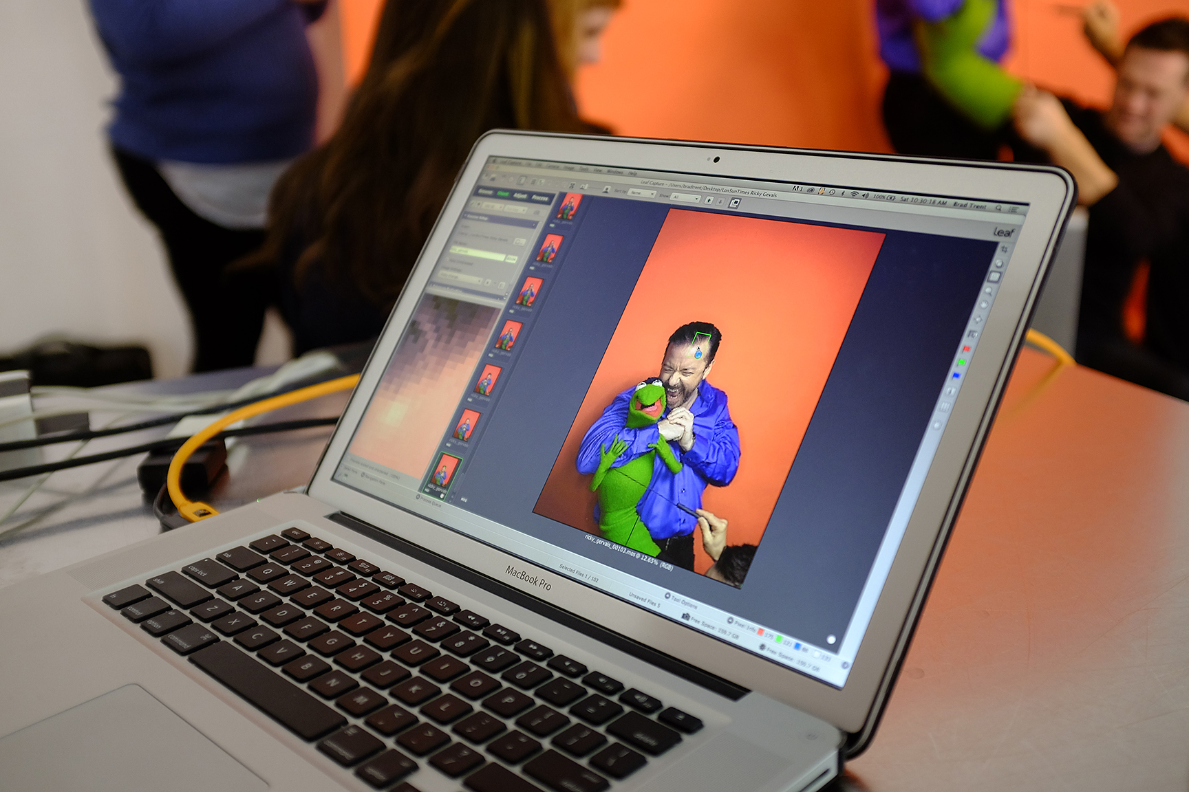 Here are some behind-the-scenes shots of how you photograph a Man and his Muppet…