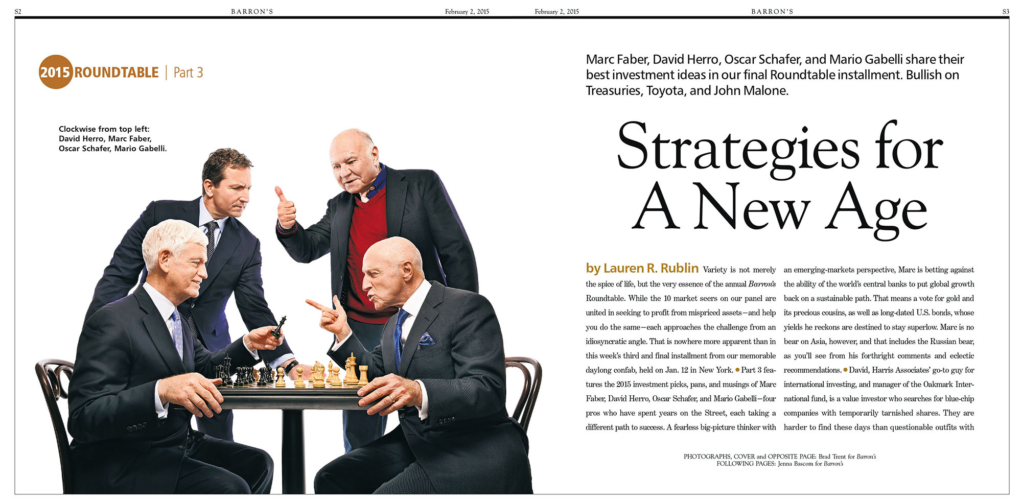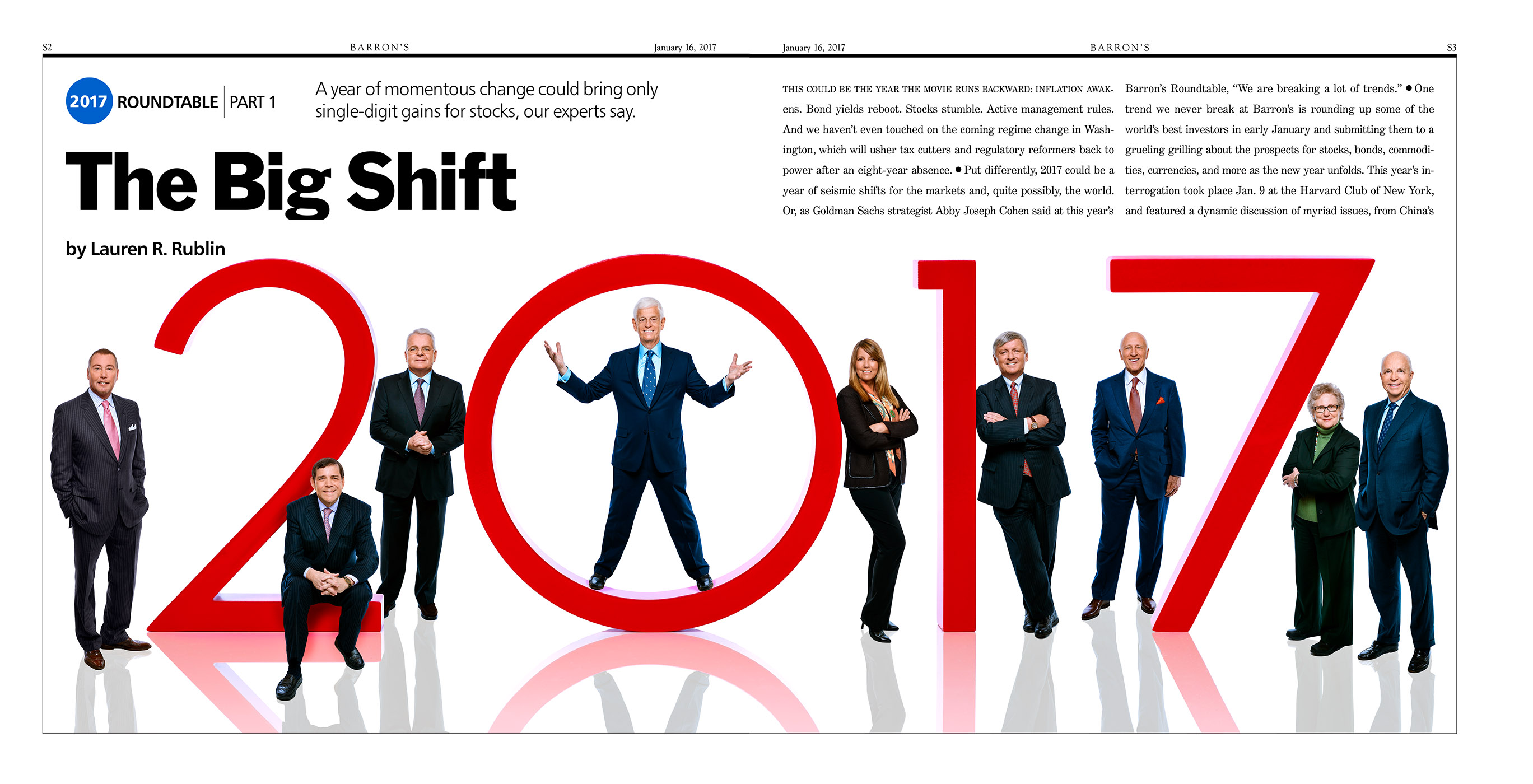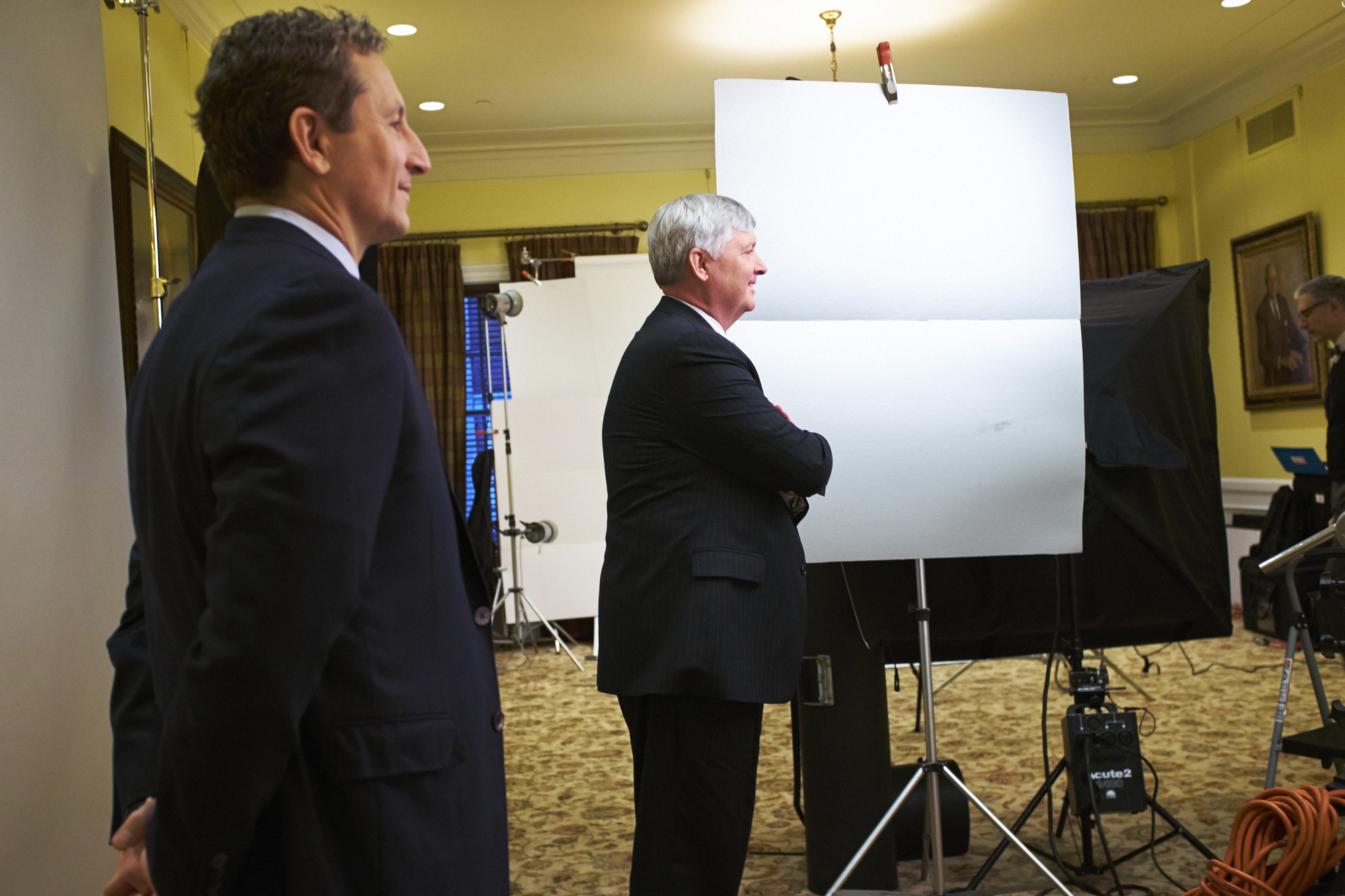 When January rolls around, one constant for the past decade has been the crew from Damn Ugly Photography has gotten to load a couple of thousand pounds of gear into a small room at the Harvard Club to shoot the members of the annual Barron’s Round Table. The basic formula is always the same. We start shooting at 8:00AM as the folks arrive. We have to shoot them separately since we need to be able to move each person around into whatever situations we’ve cooked up…and we have to be completely finished by 10:00AM since that’s when their all-day meeting begins. In that time we have to come up with images that will run on three consecutive covers in January, plus the cover for the mid-year report in June, as well as inside feature photos for all issues. Easy, right?!!