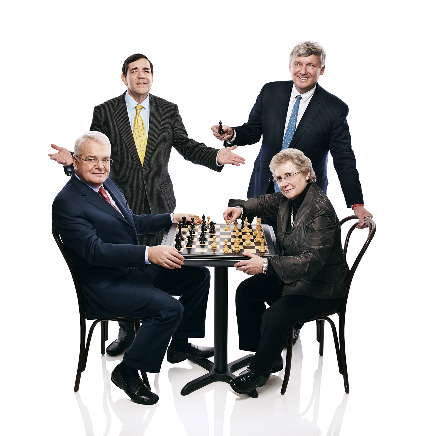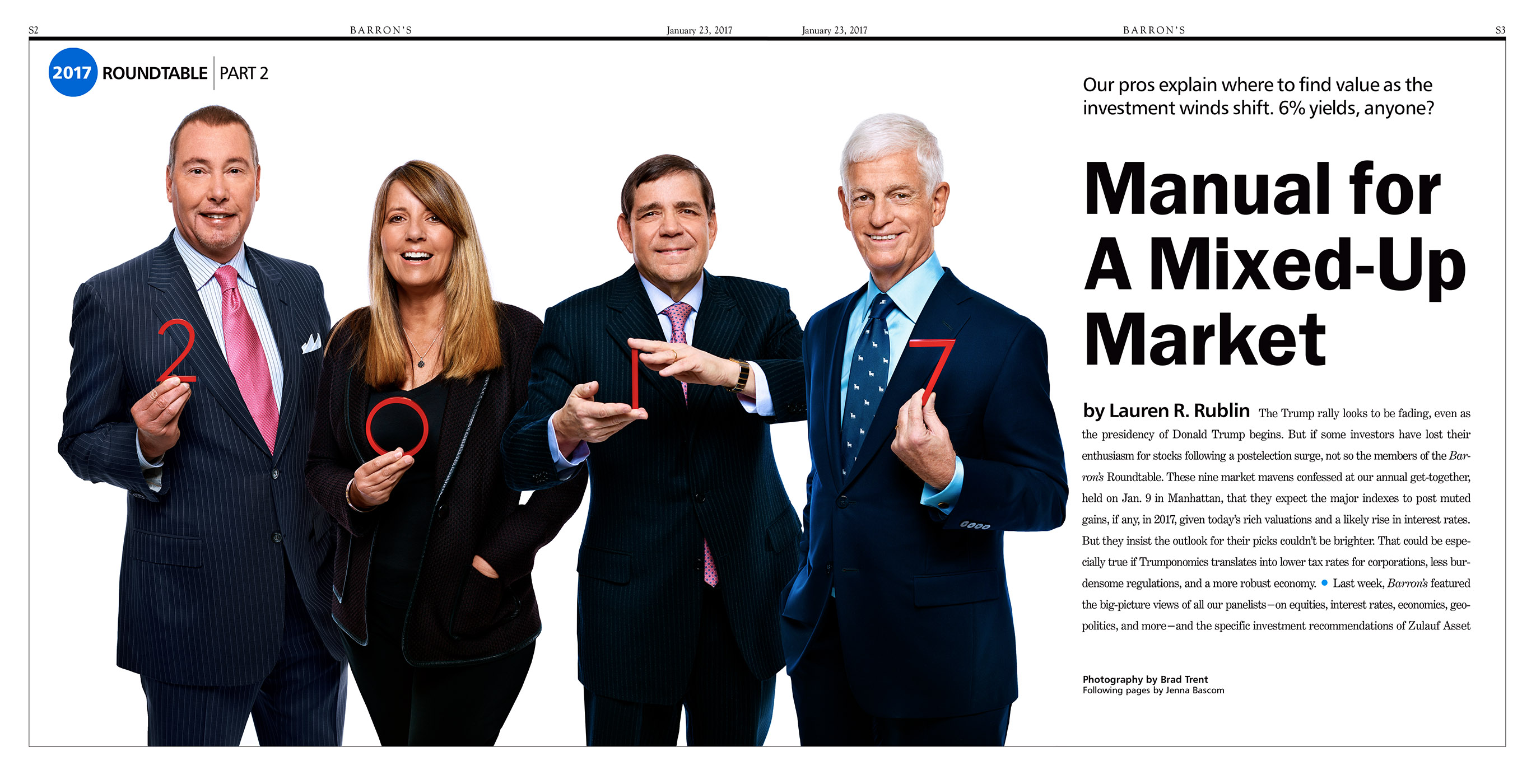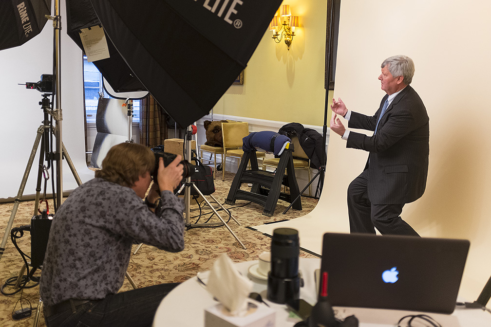 When January rolls around, one constant for the past decade has been the crew from Damn Ugly Photography has gotten to load a couple of thousand pounds of gear into a small room at the Harvard Club to shoot the members of the annual Barron’s Round Table. The basic formula is always the same. We start shooting at 8:00AM as the folks arrive. We have to shoot them separately since we need to be able to move each person around into whatever situations we’ve cooked up…and we have to be completely finished by 10:00AM since that’s when their all-day meeting begins. In that time we have to come up with images that will run on three consecutive covers in January, plus the cover for the mid-year report in June, as well as inside feature photos for all issues. Easy, right?!!