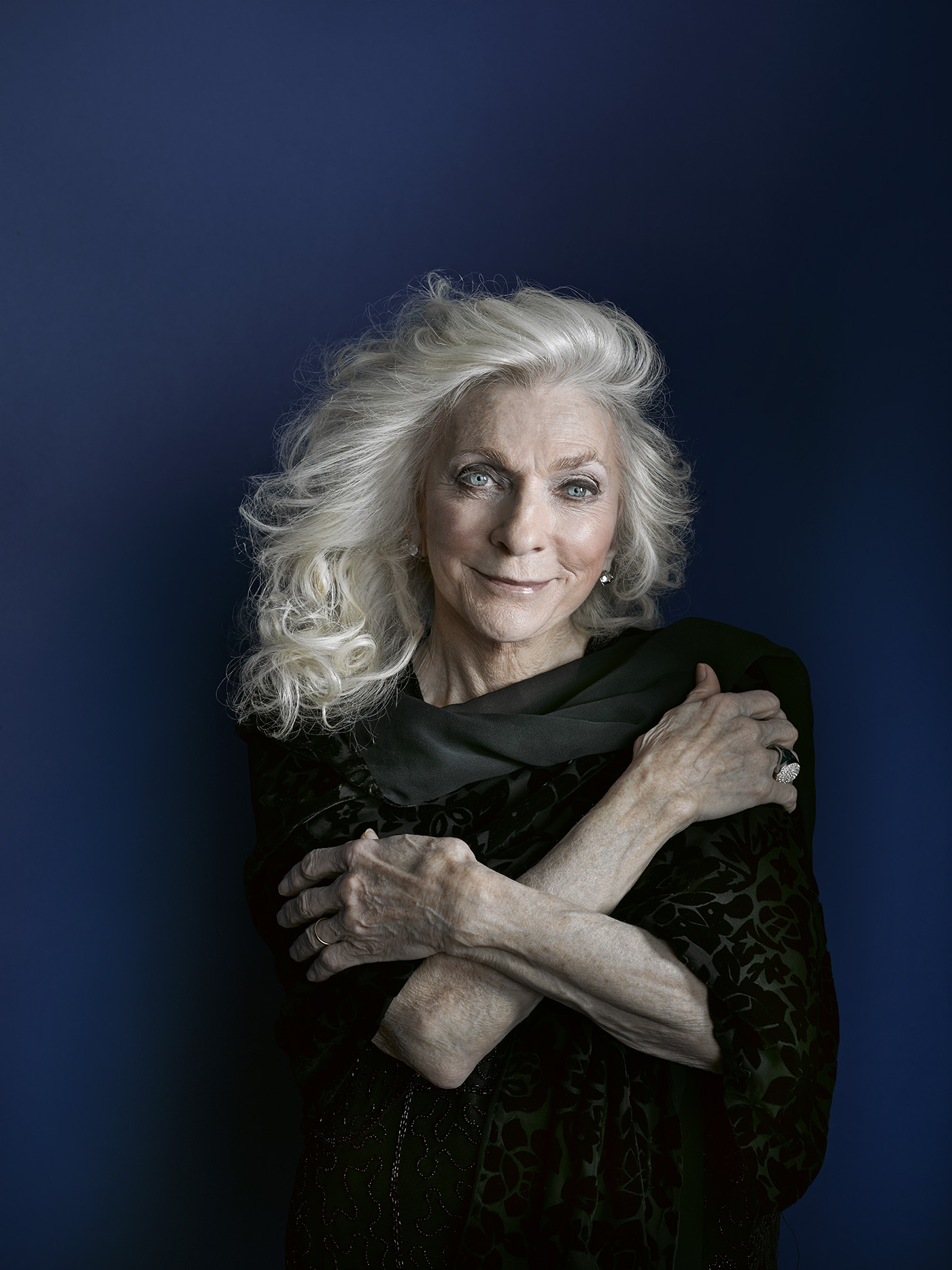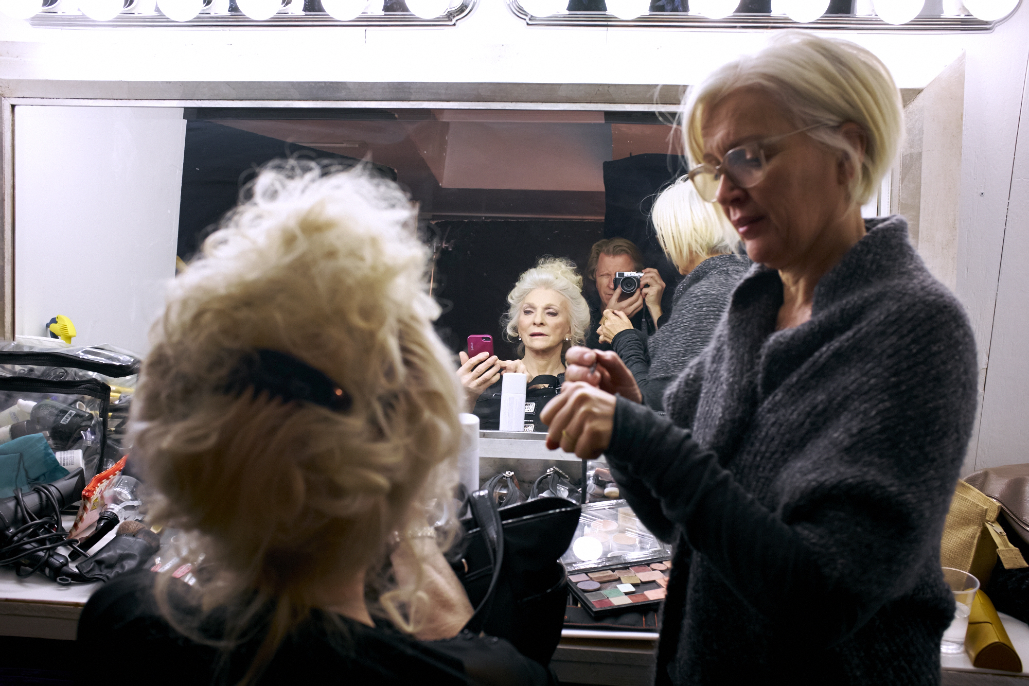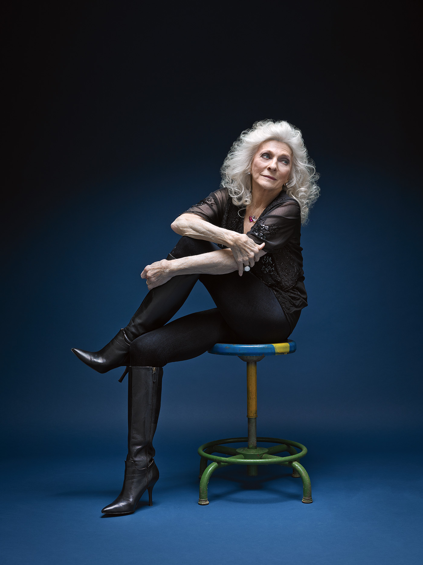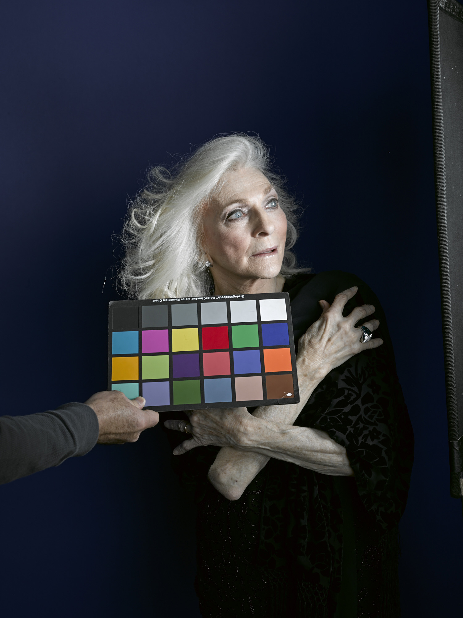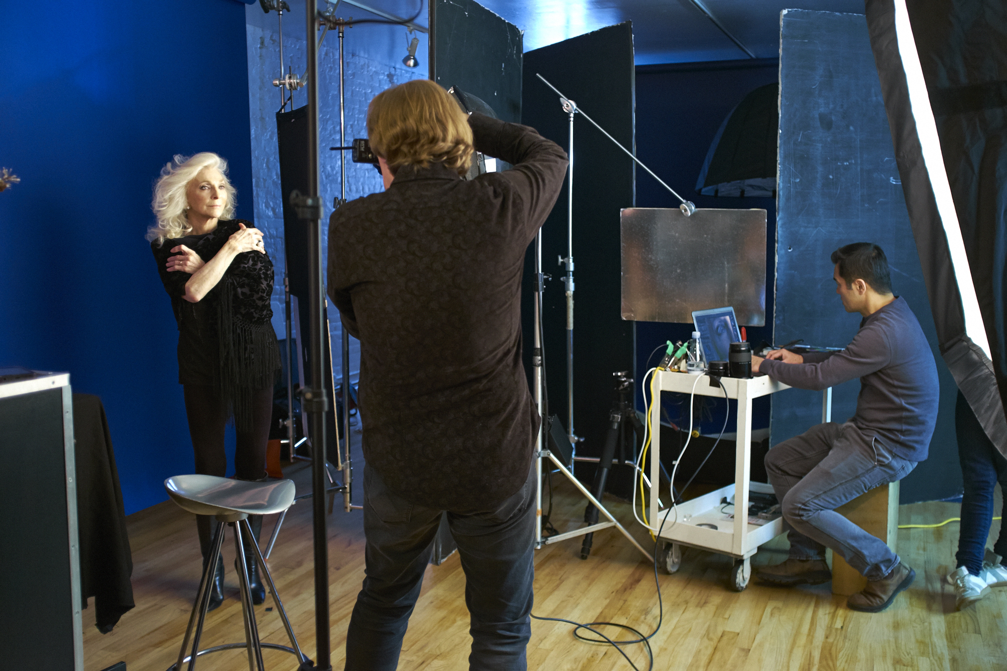 When I described the apartment as a pied-à-terre, I wasn’t kidding. Her main residence is an estate in New Jersey, but the Central Park apartment is just a small one-bedroom she uses in the city, but it was impeccably designed and offered us a few options. We started with a simple setup in front of a painting her children commissioned of their mother 30 years earlier. And for the lighting, it was equally simple…just a 7′ umbrella with a black Gobo to cut the light on the upper corner…