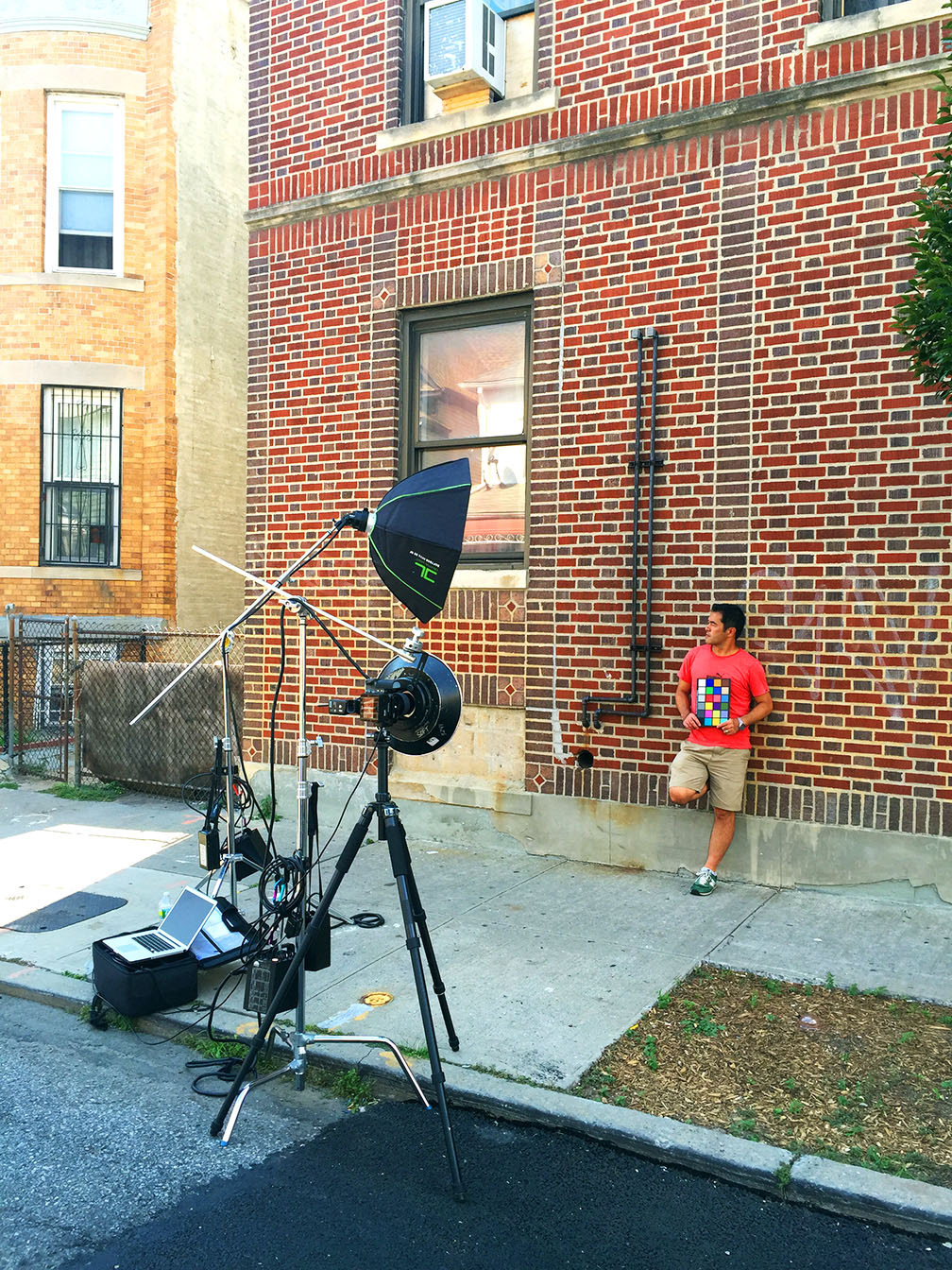 As you can see, the setup couldn’t be simpler…just a mini-octa bank and a soft ringlight. We put down the Canon, and pulled out the Hasselblad and the Macbeth chart…