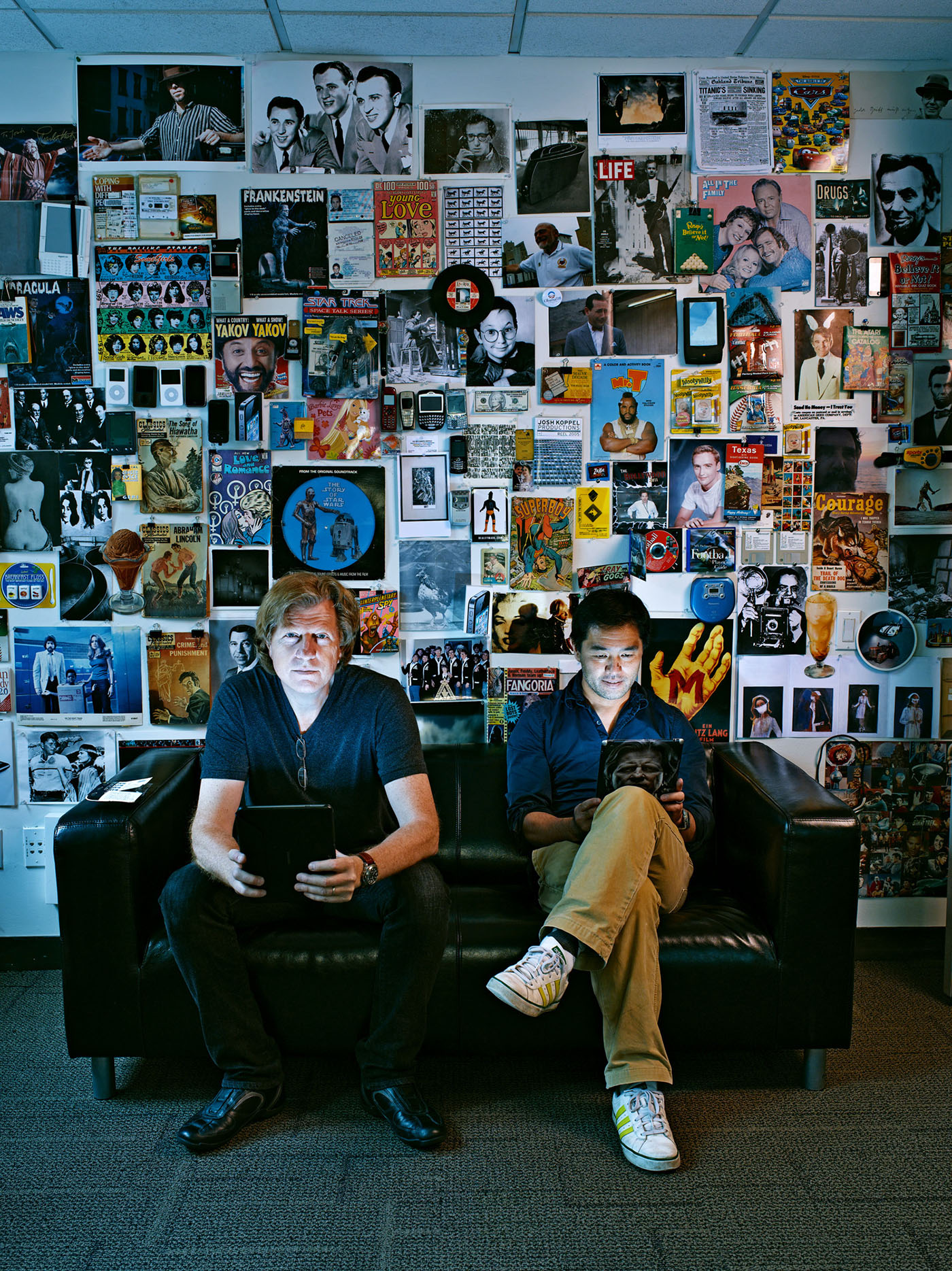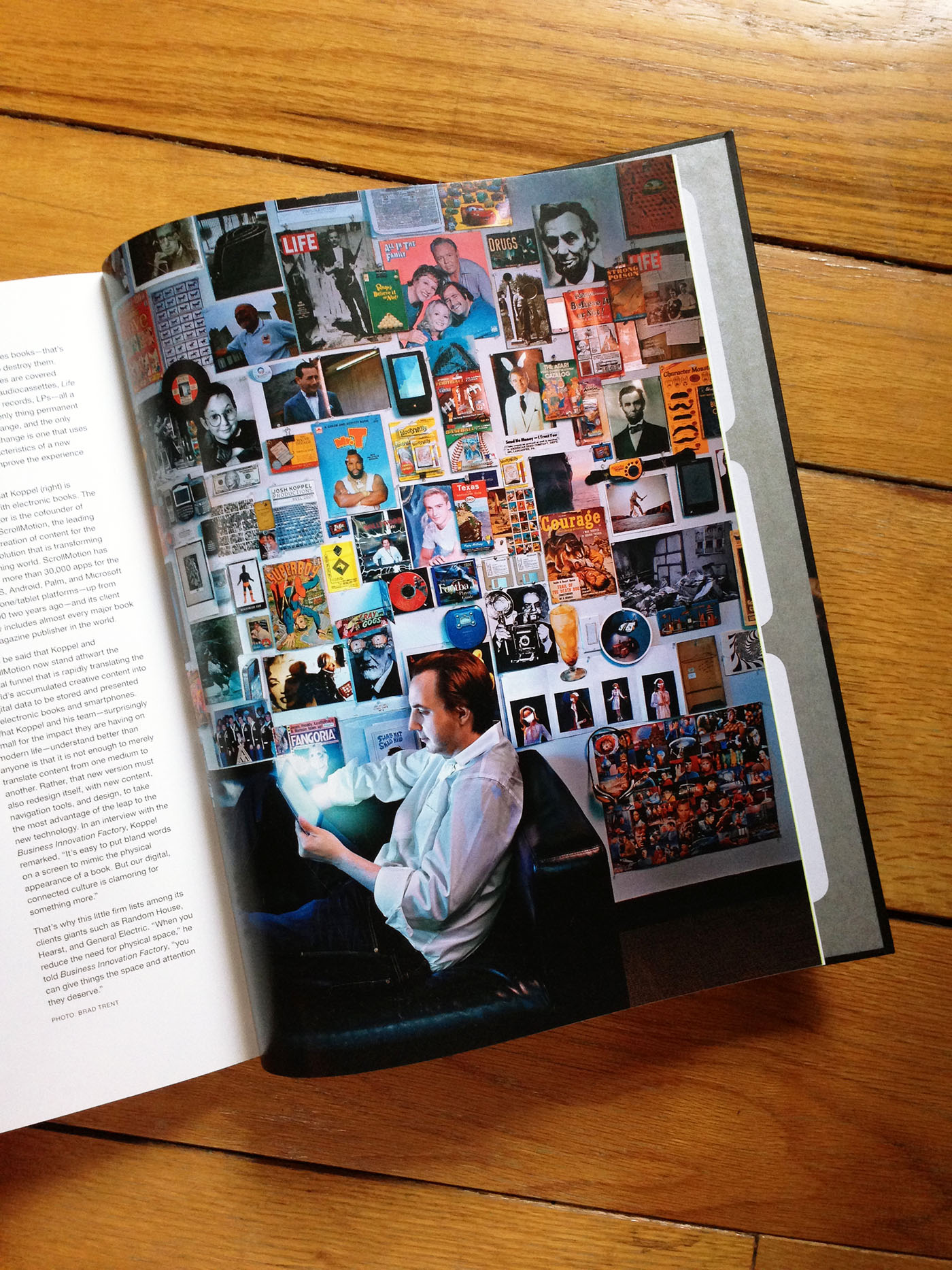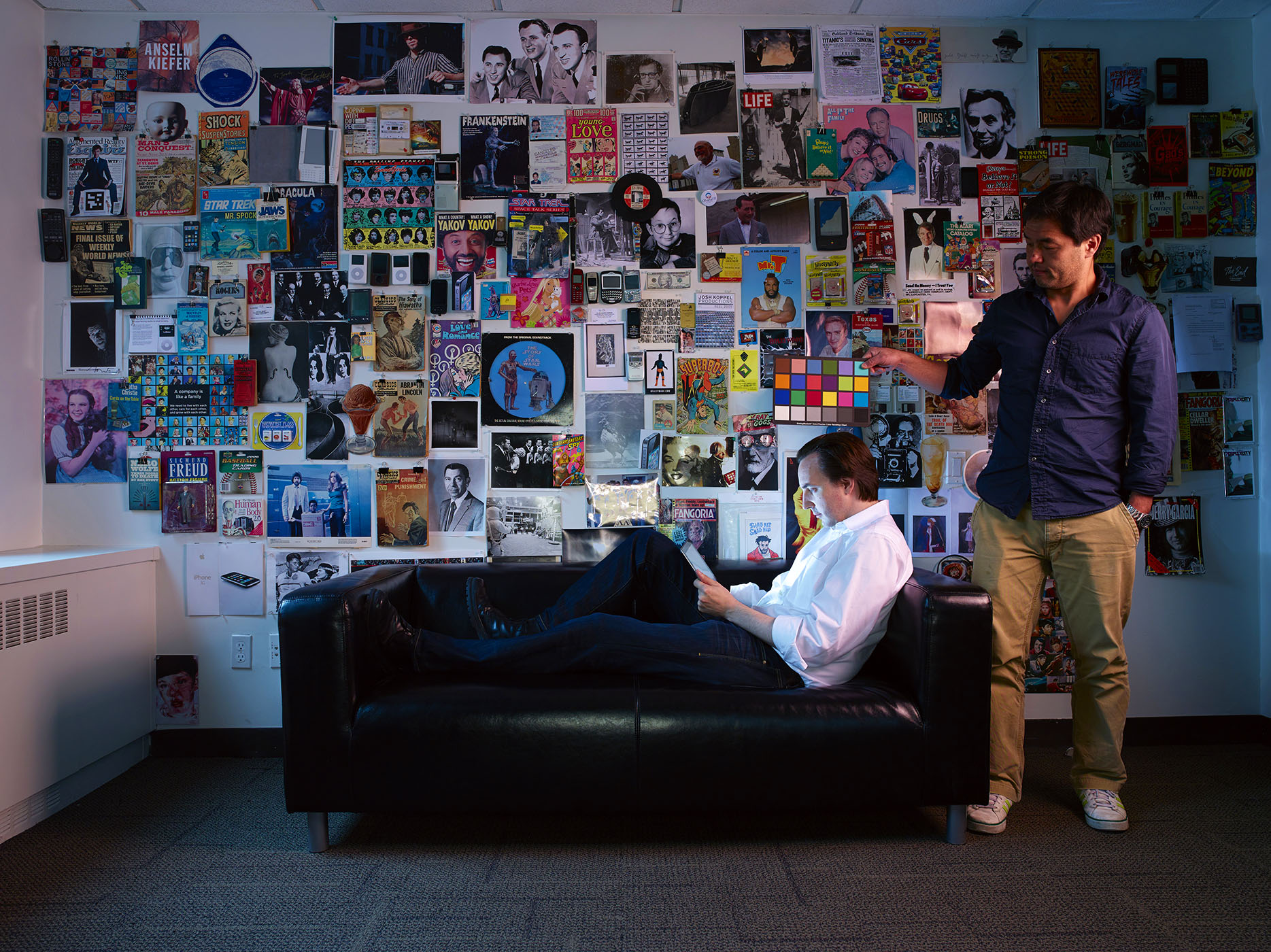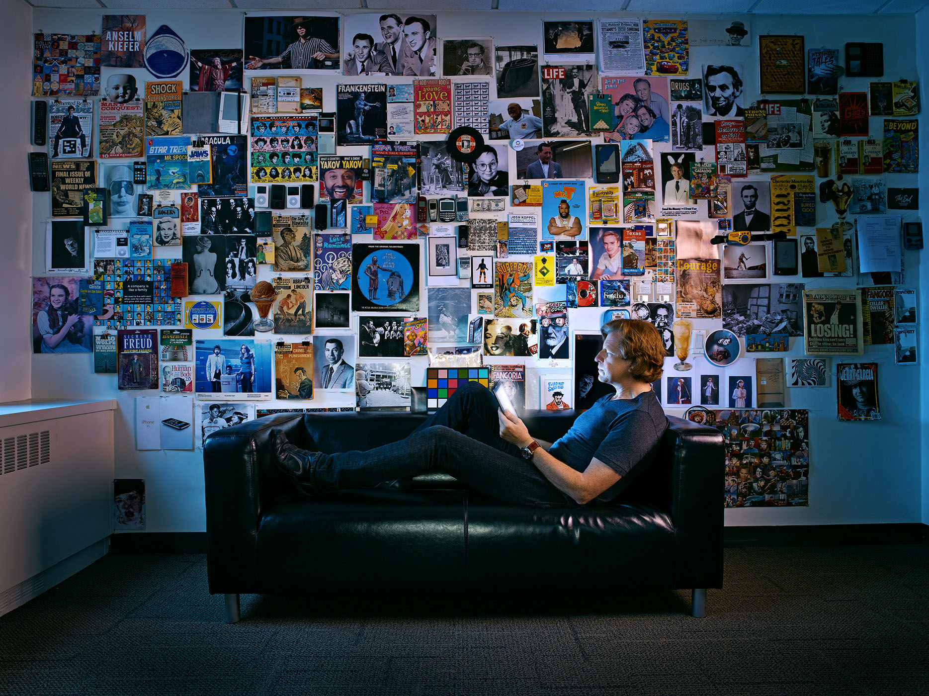 I got an email this afternoon reminding me that ‘The Human Face of Big Data’Rick Smolan’s look at how the rapid emergence of digital devices is affecting our lives…will be airing tonight at 10:00PM Eastern on PBS (check local listings). And that reminded me that I actually did one of the shots that was featured in the book. Rick had me shoot Josh Koppel, the CEO of ScrollMotion…an App developer that has created mobile content for most of the world’s largest publishers. ScrollMotion basically ‘teaches’ Old Media how to use New Media. The funny thing is that when you enter their offices, it’s like going to a museum of Pre-Digital Technology! Every single inch of the wall space is filled with magazine cover, record albums, movie posters and newspaper clippings…