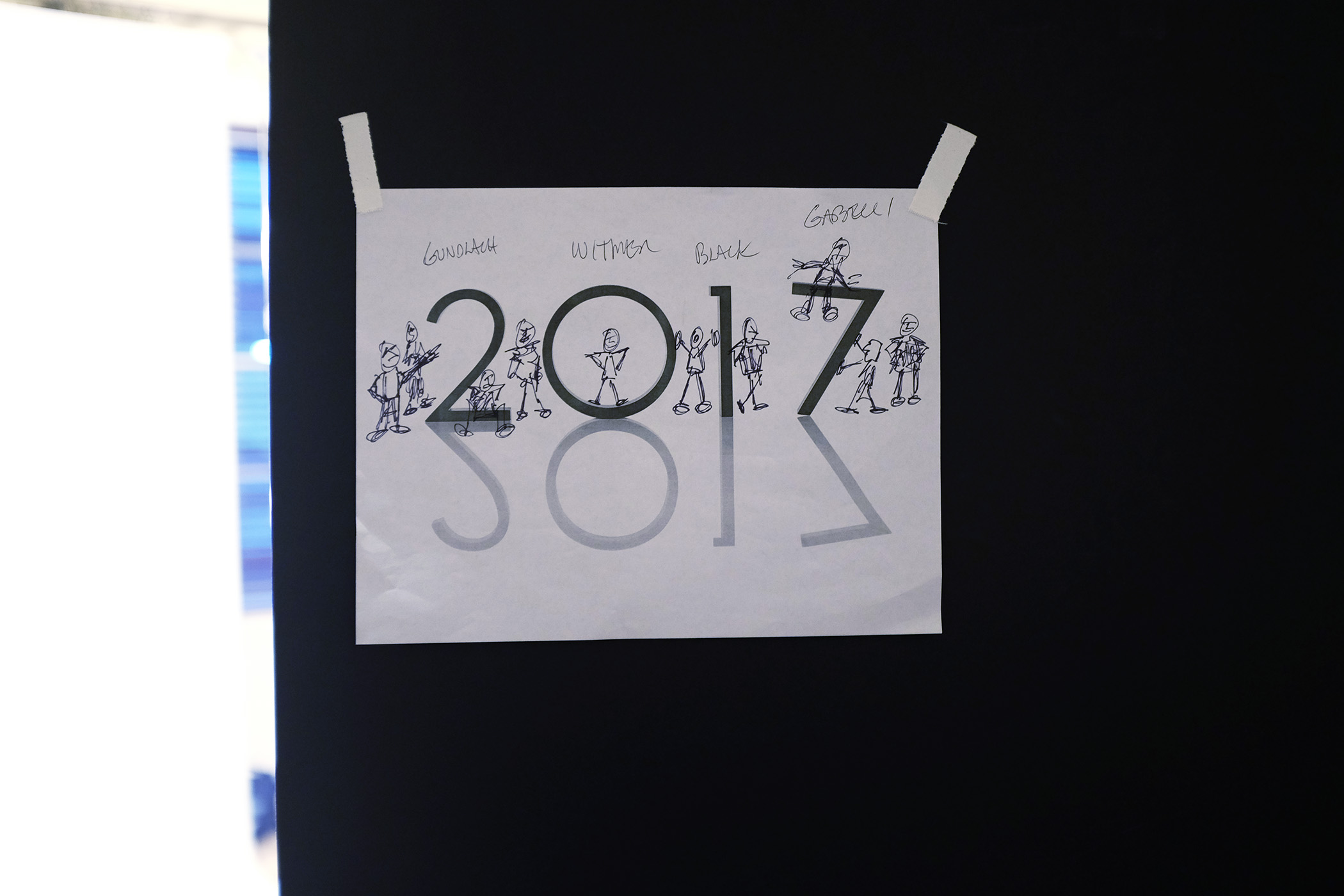 I had a couple of 2017 ‘cheats’ taped to the gobos on our main set to help me keep track of where to place people…