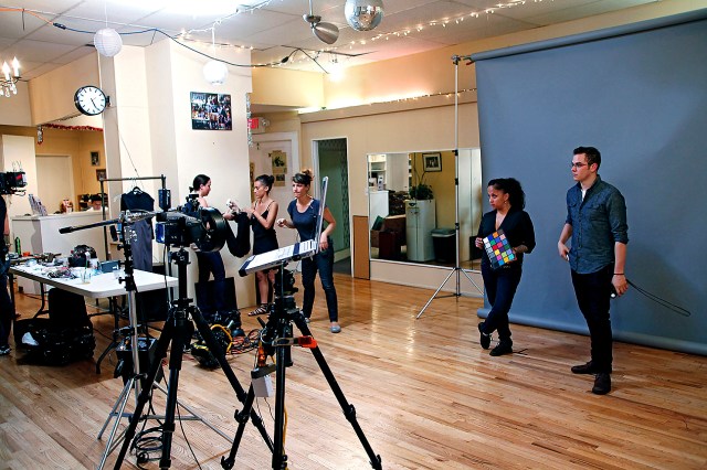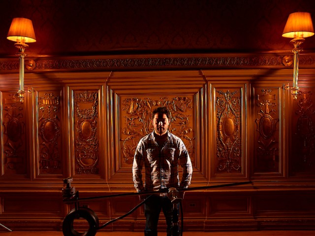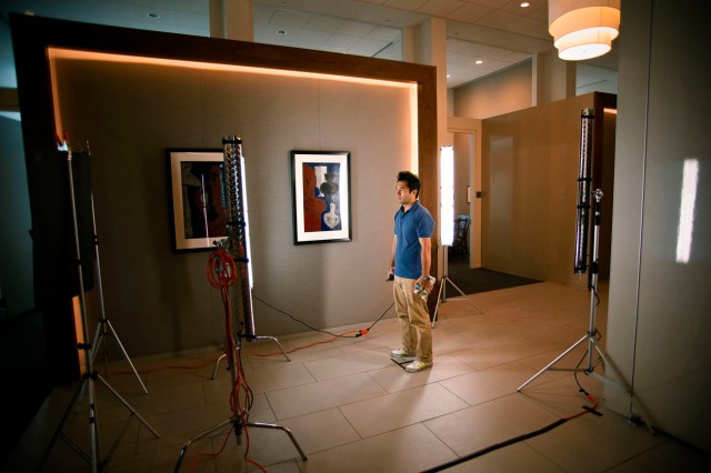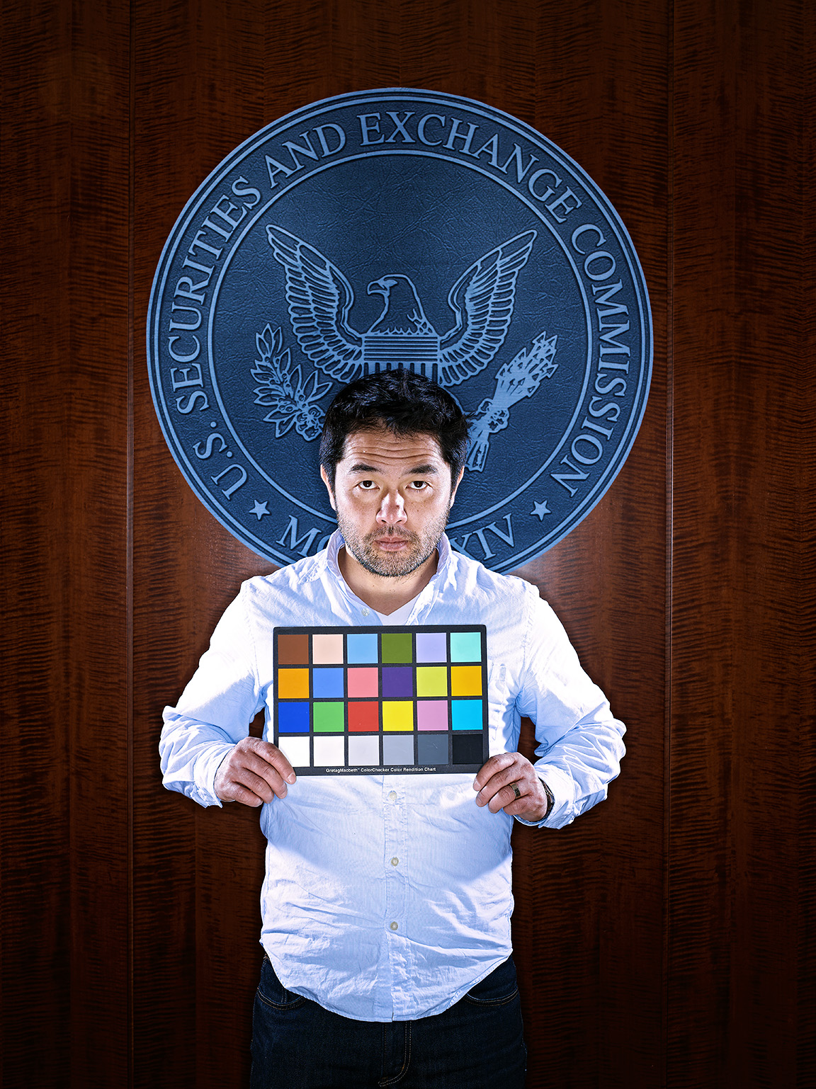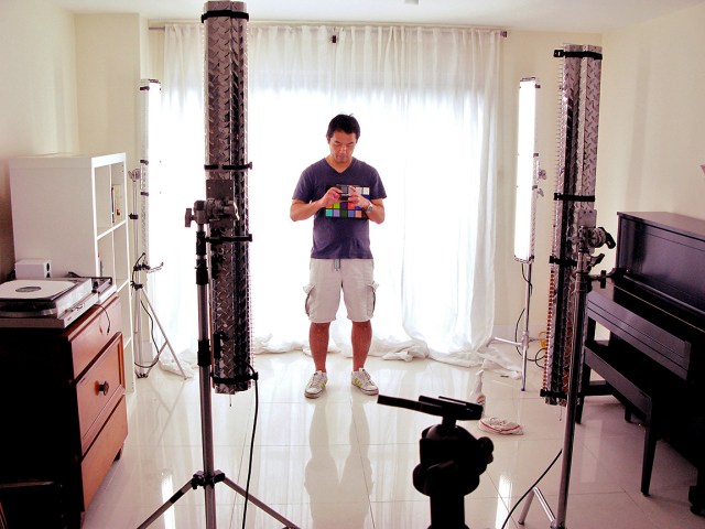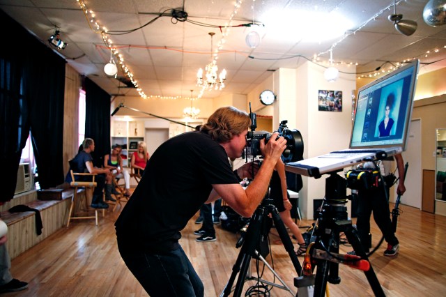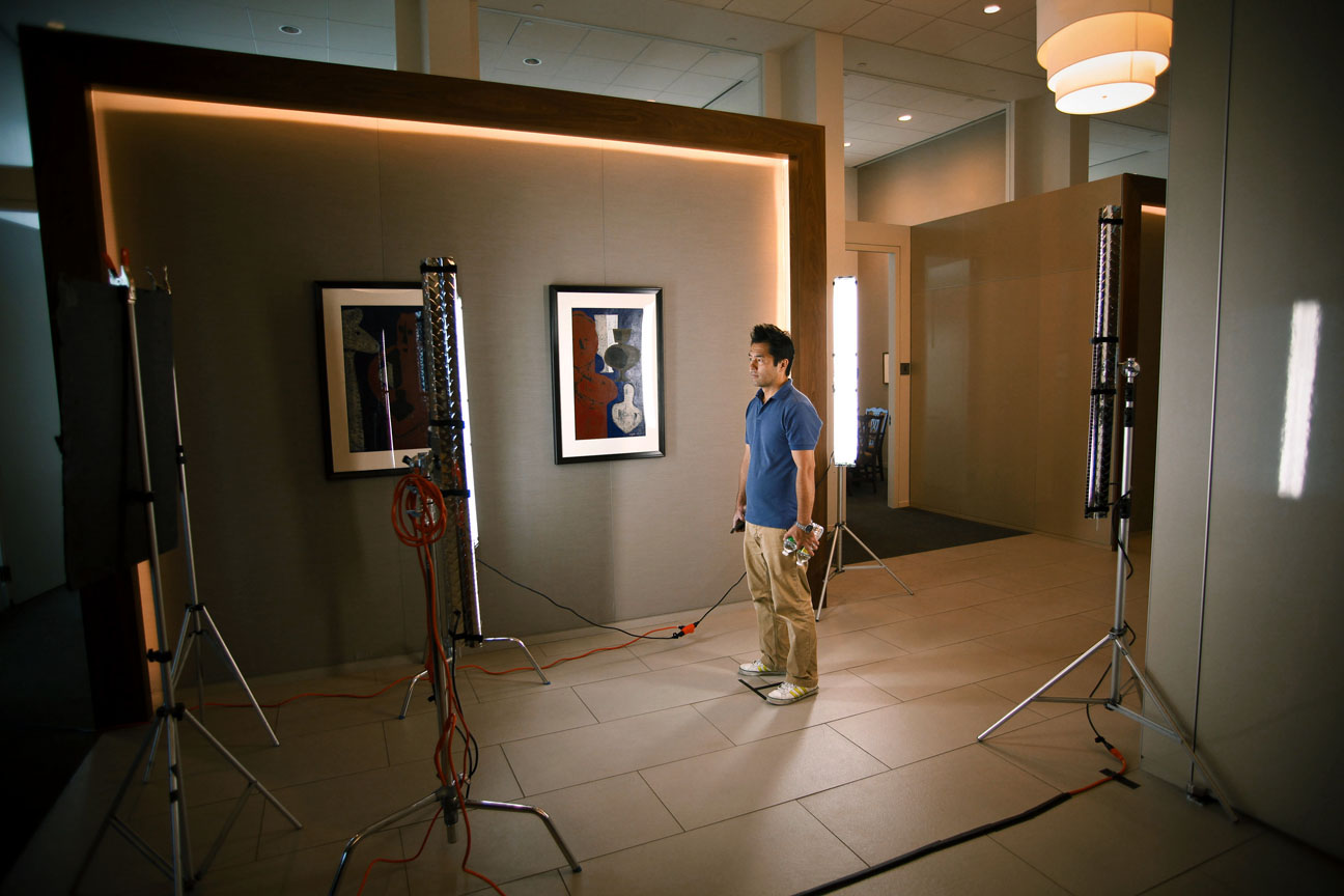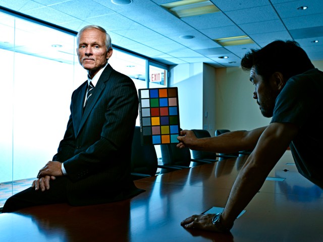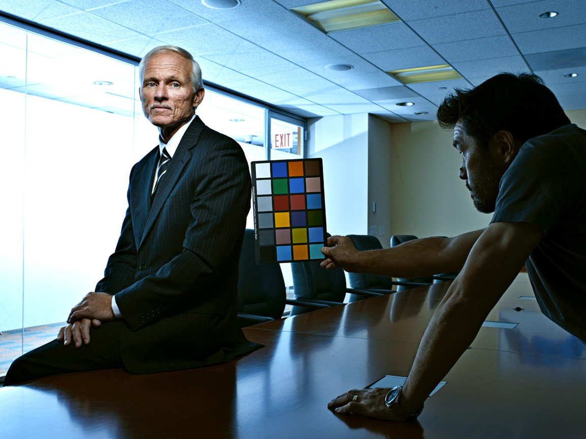 Because of the time constraints and the fact that I was going to shoot him against that backlit set, I made the decision to light Bill with a couple of 1′ x 1′ BiColor Litepanels. The BiColor variator made it super easy to dial in the correct color temperature and the output variator allowed me to match the intensity of the backlit blue wall in seconds. I’ve really come to appreciate the WYSIWYG aspect of shooting the the Litepanel system.