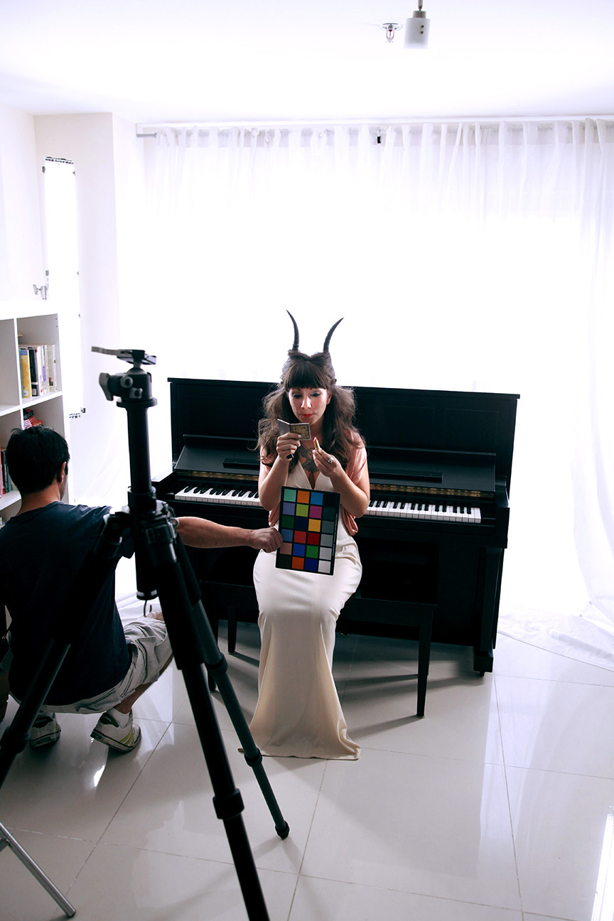 It was small…really small! My wide-angle lenses were gonna get a workout! The only place I could drop a seamless for the cover would be in a back corner behind the cameras…