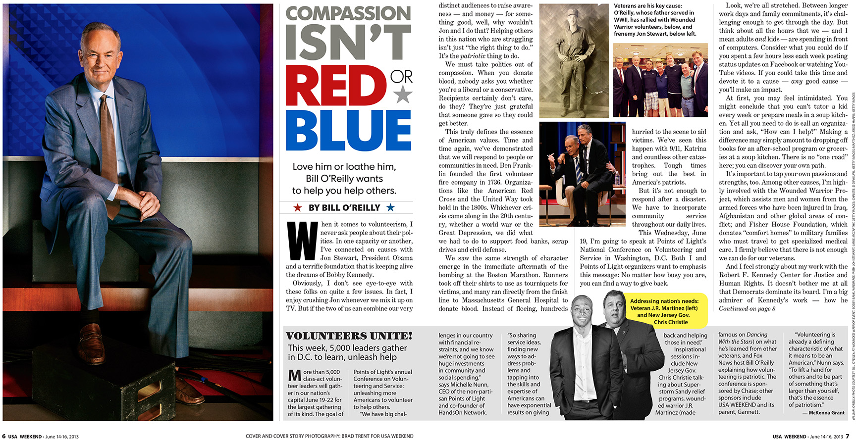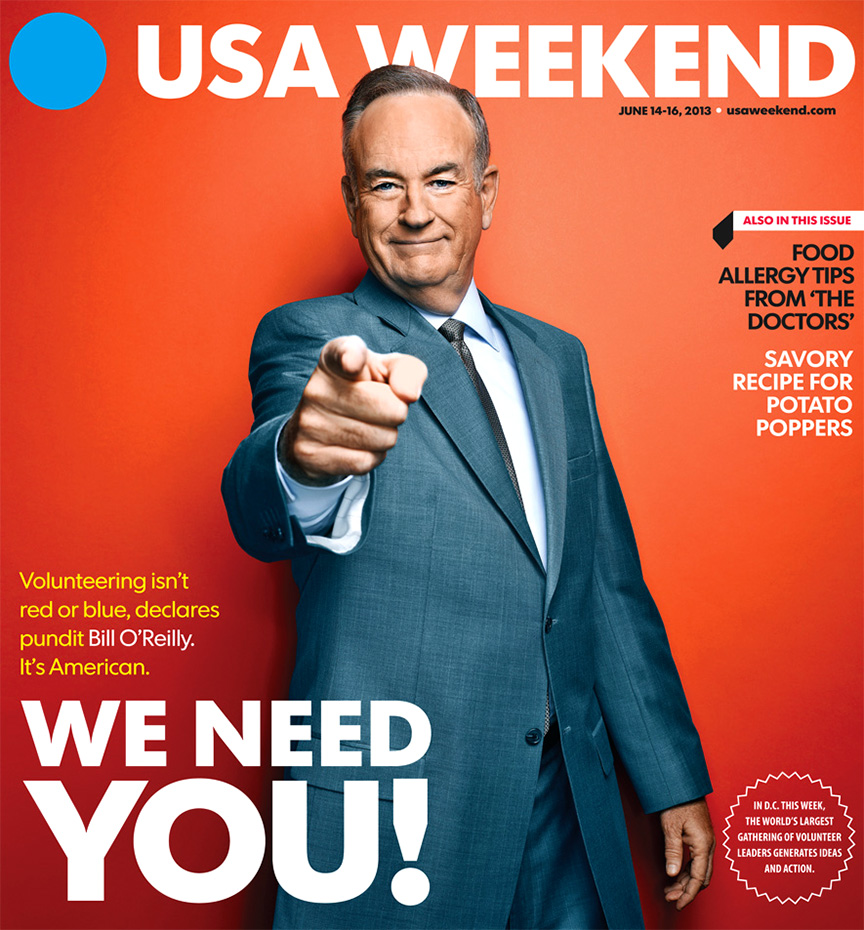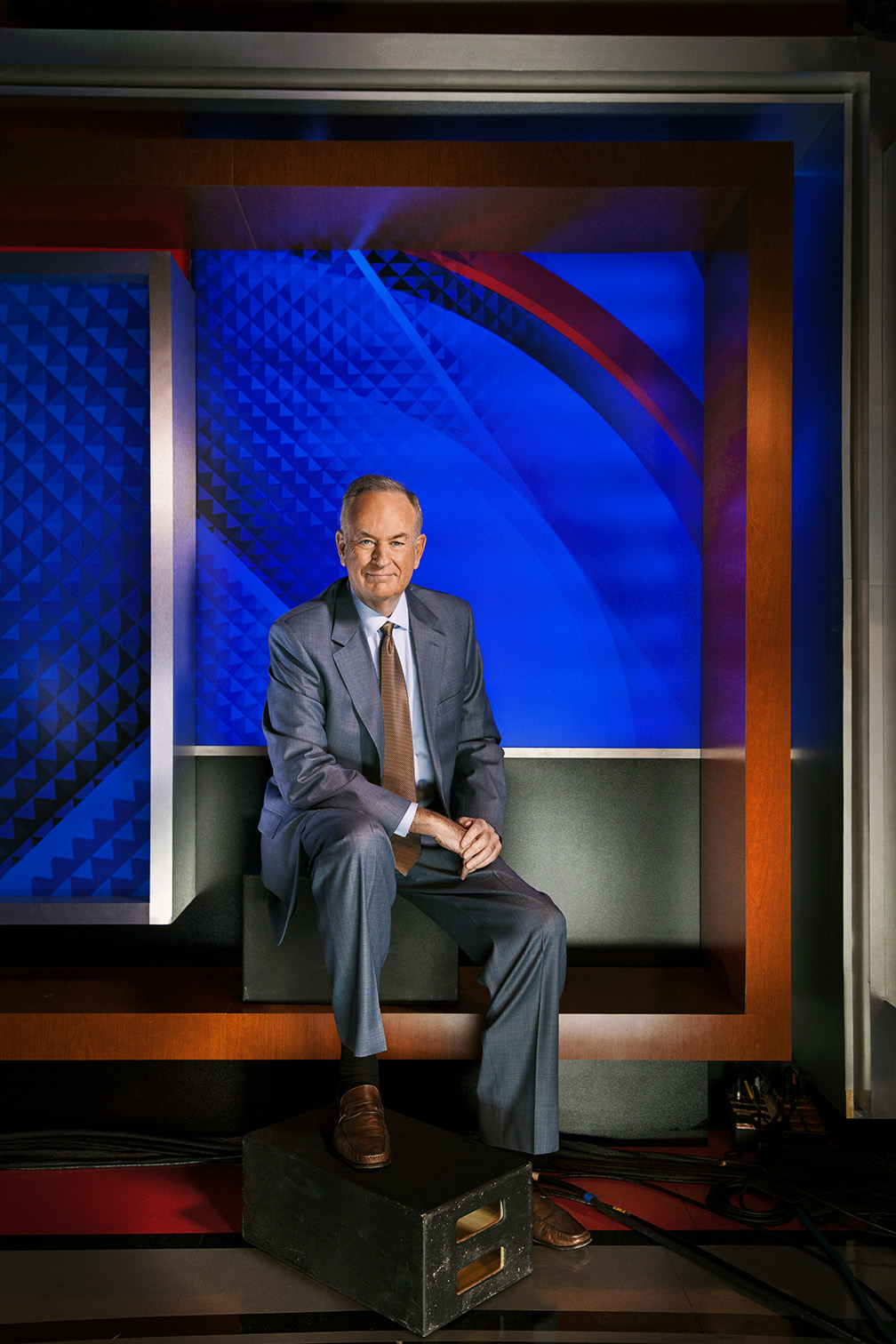When I got the call from Dave Baratz at USAWeekend to shoot Bill O’Reilly, I immediately could tell from his voice that this was probably when was of those quick in-and-out gigs, and I was right. Bill had extremely limited time available and wouldn’t go to a studio, so the only place we could shoot him was on the set of The O’Reilly Factor at Fox News. Oh yeah…we were told we would only have about ten minutes with him…immediately before he taped his show!