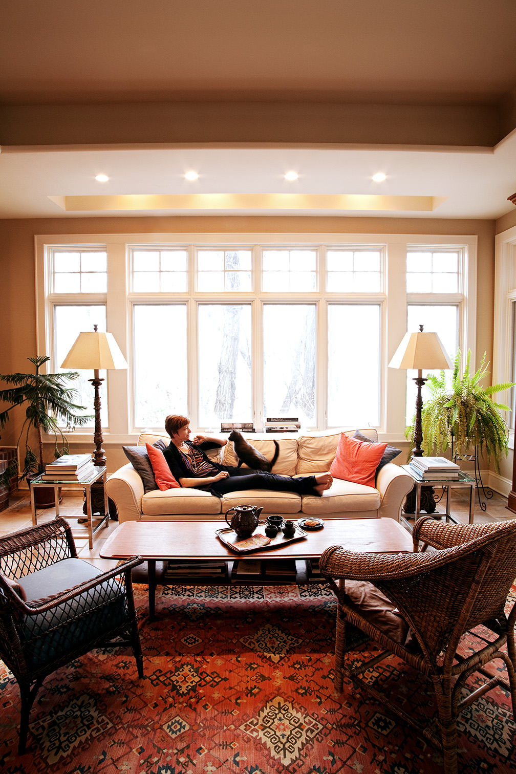 The lighting was pretty simple…we let the windows bleed in a ton of ambient light to blow out the details from outside, and I added a couple of very bright rim lights on either side, then just dropped in some front fill from a gridded Profoto RFI boomed high above him…